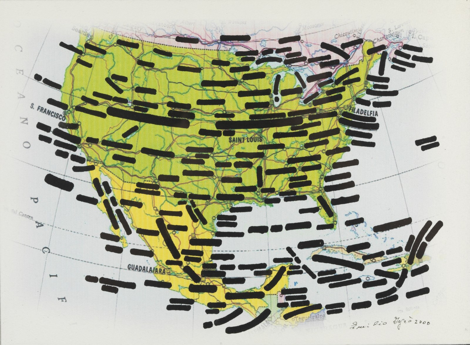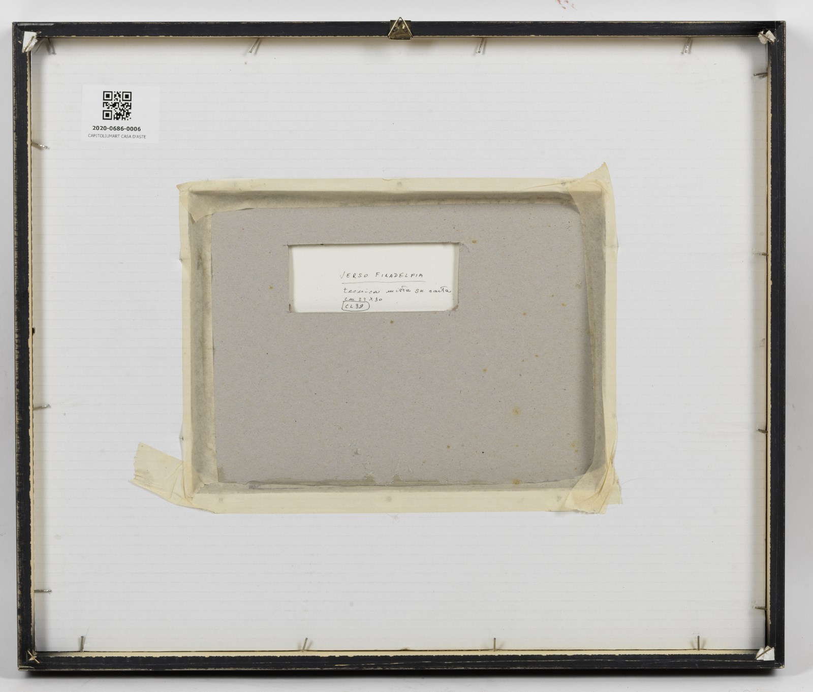 ISGRO' EMILIO (n. 1937) Verso Filadelfia. 2000. Tecnica mista su carta. Cm 30,00 x 22,00. Firma e anno in basso a destra. Titolo al retro. Autentica dell'artista su fotografia. Cornice presente