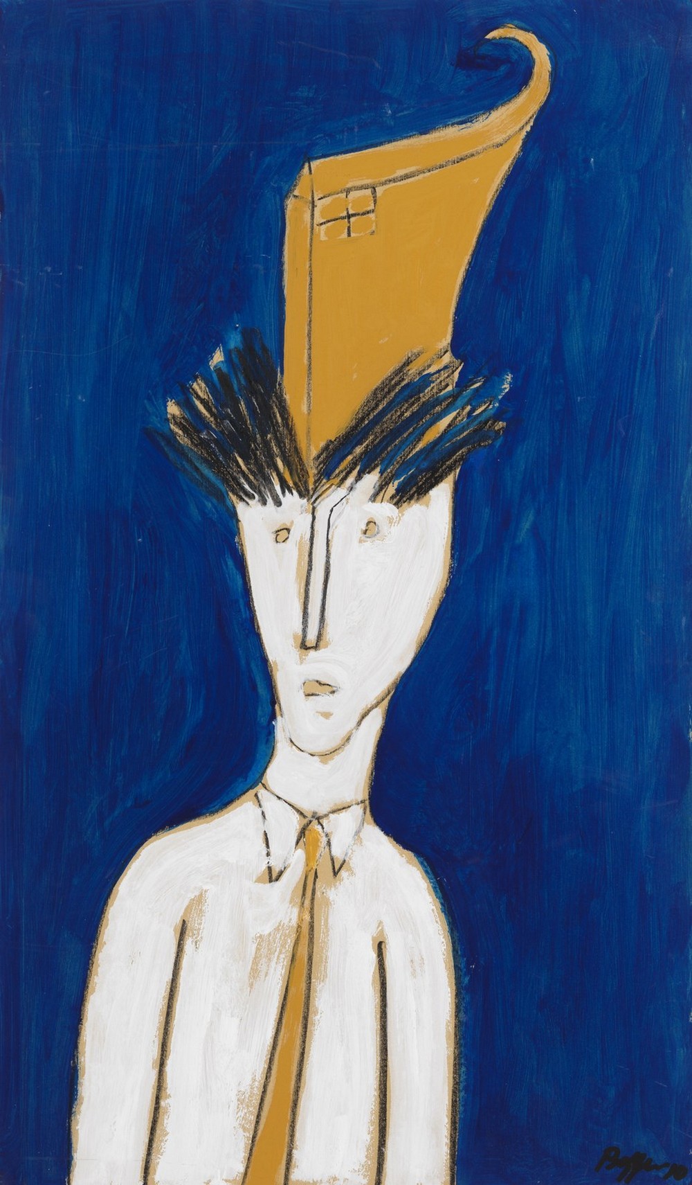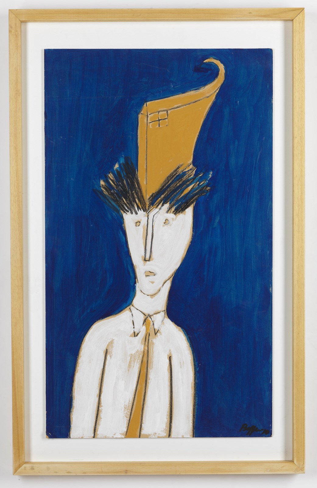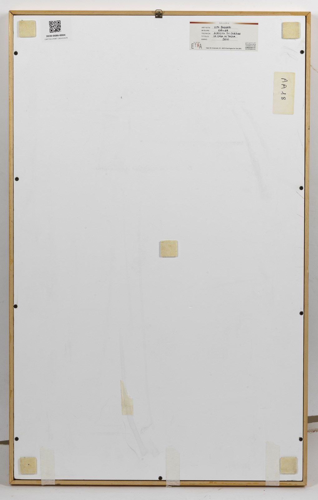 BOGGERI VITO (n. 1939) La casa testa. 2010. Acrilici su cartone pressato. Cm 40,00 x 68,50. Firma in basso a destra. Al retro cartiglio descrittivo Galleria Etra. Autentica dell'artista su fotografia. Pubblicazione: Vito Boggeri - Le proprietà della casa a cura di Enzo Battarra e Gabriella Ibello, 16 Dicembre 2011 - 16 Gennaio 2012, Sliding Etra, Sant'Agata de' Goti. Esposizioni:16 Dicembre 2011 - 16 Gennaio 2012, Sliding Etra, Sant'Agata de' Goti. Cornice presente