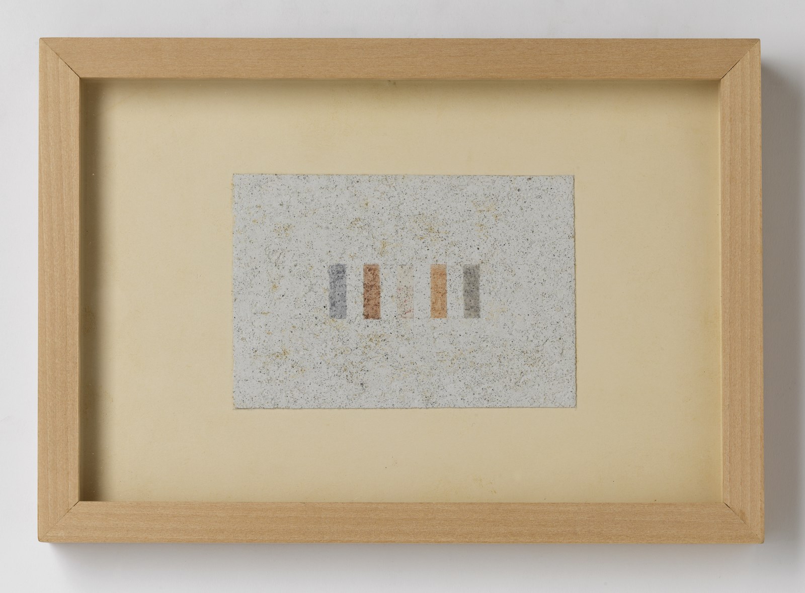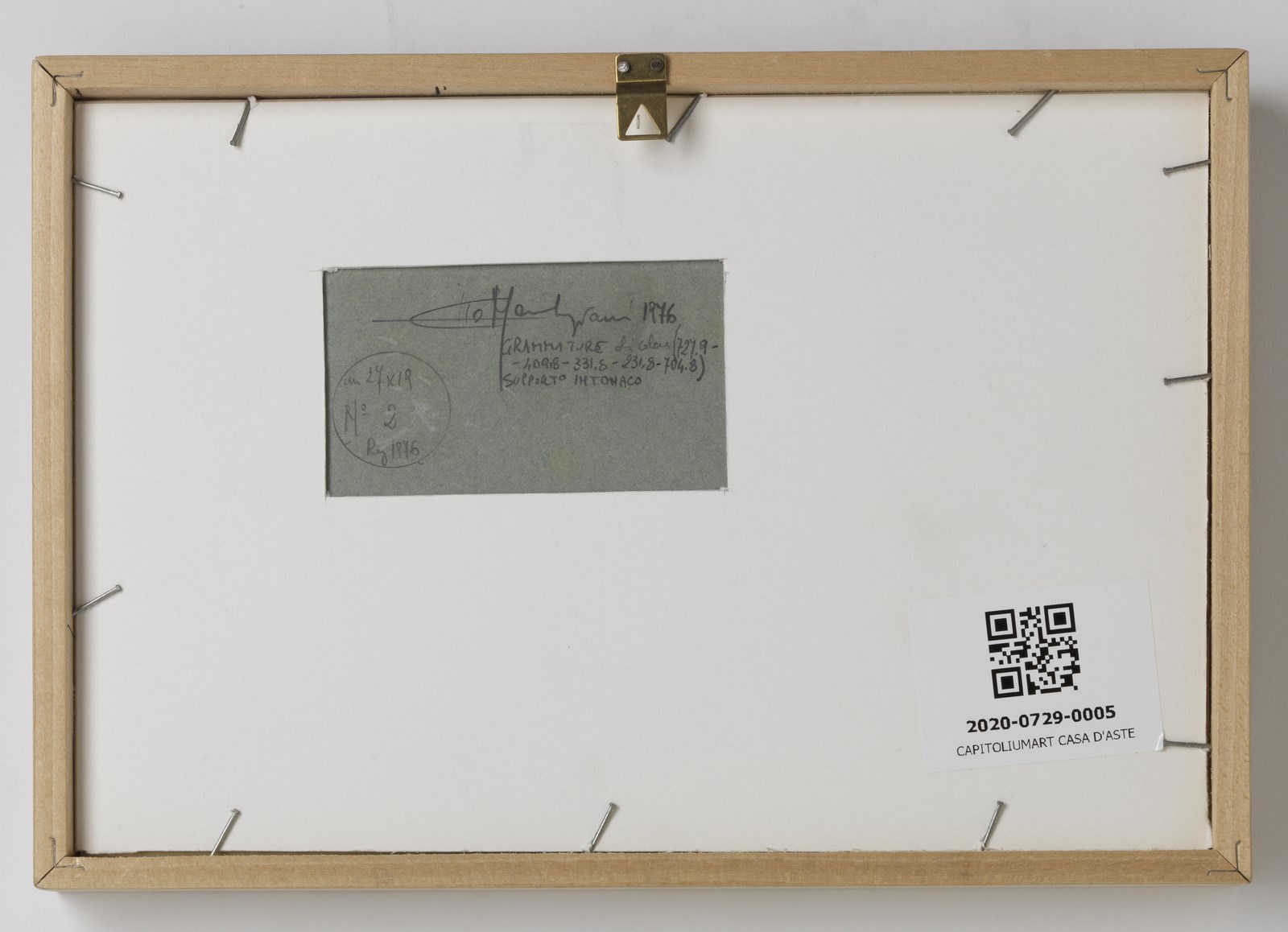 MARCHEGIANI ELIO (n. 1929) Grammature di colore. 1976. Acrilico su intonaco. Cm 17,00 x 14,00. Al retro titolo, firma e anno. Cornice presente