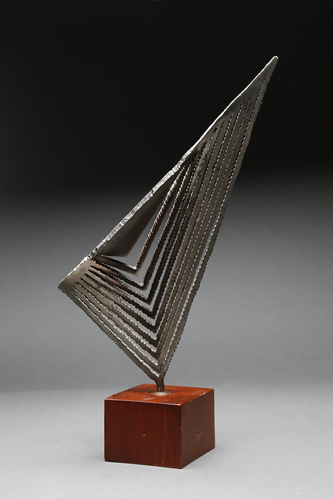BENETTON SIMON (n. 1933) La Vela. 1980. Ferro e legno. Cm 37,00 x 54,00. Firma e anno incise al centro. Autentica dell'artista su fotografia.