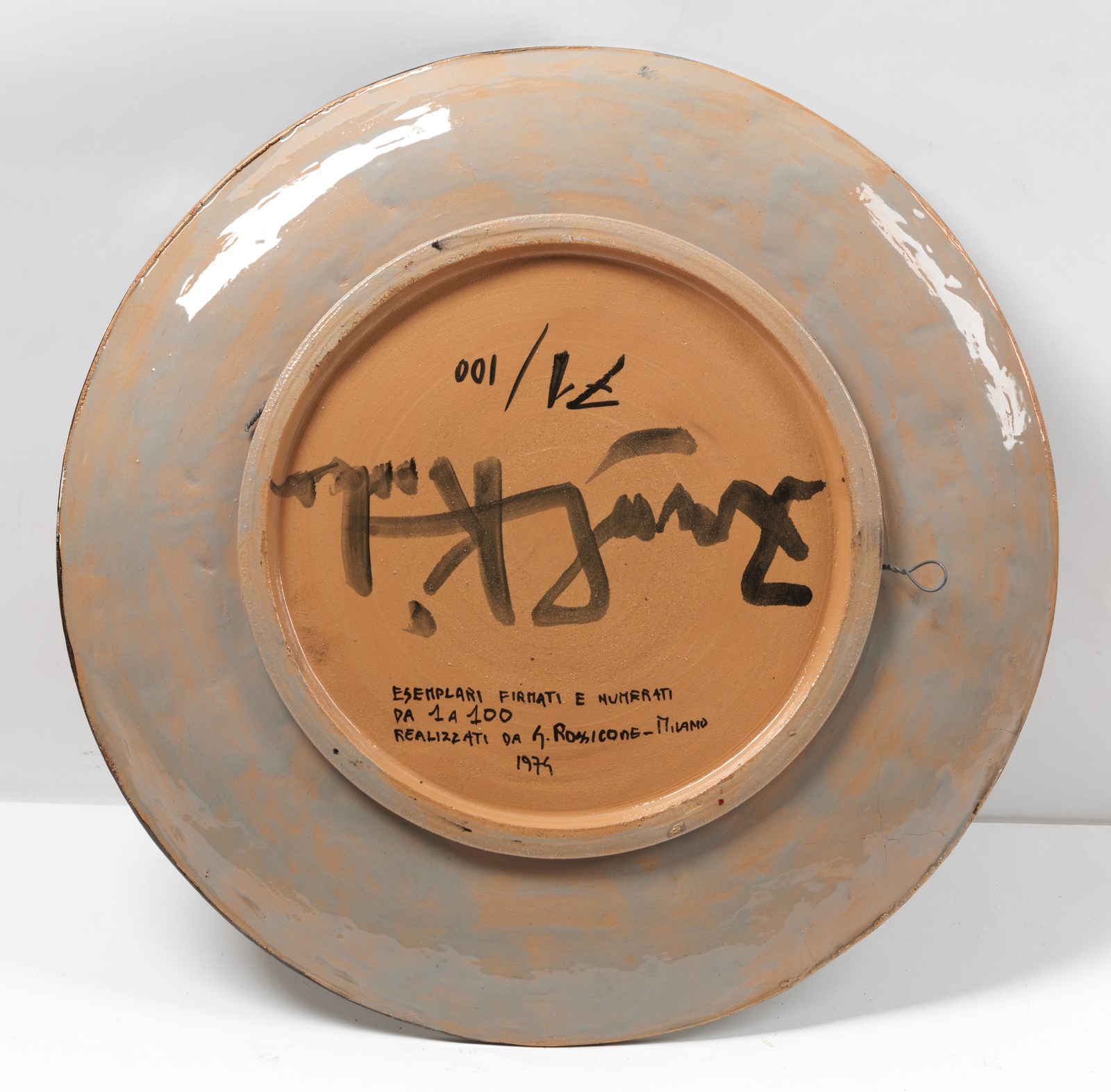 KODRA IBRAHIM (1918 - 2006) Senza titolo. 1974. Piatto in ceramica. Cm 24,00 x 24,00. 71/100. Sotto la base tiratura e firma. Realizzato da Rossicone, Milano.