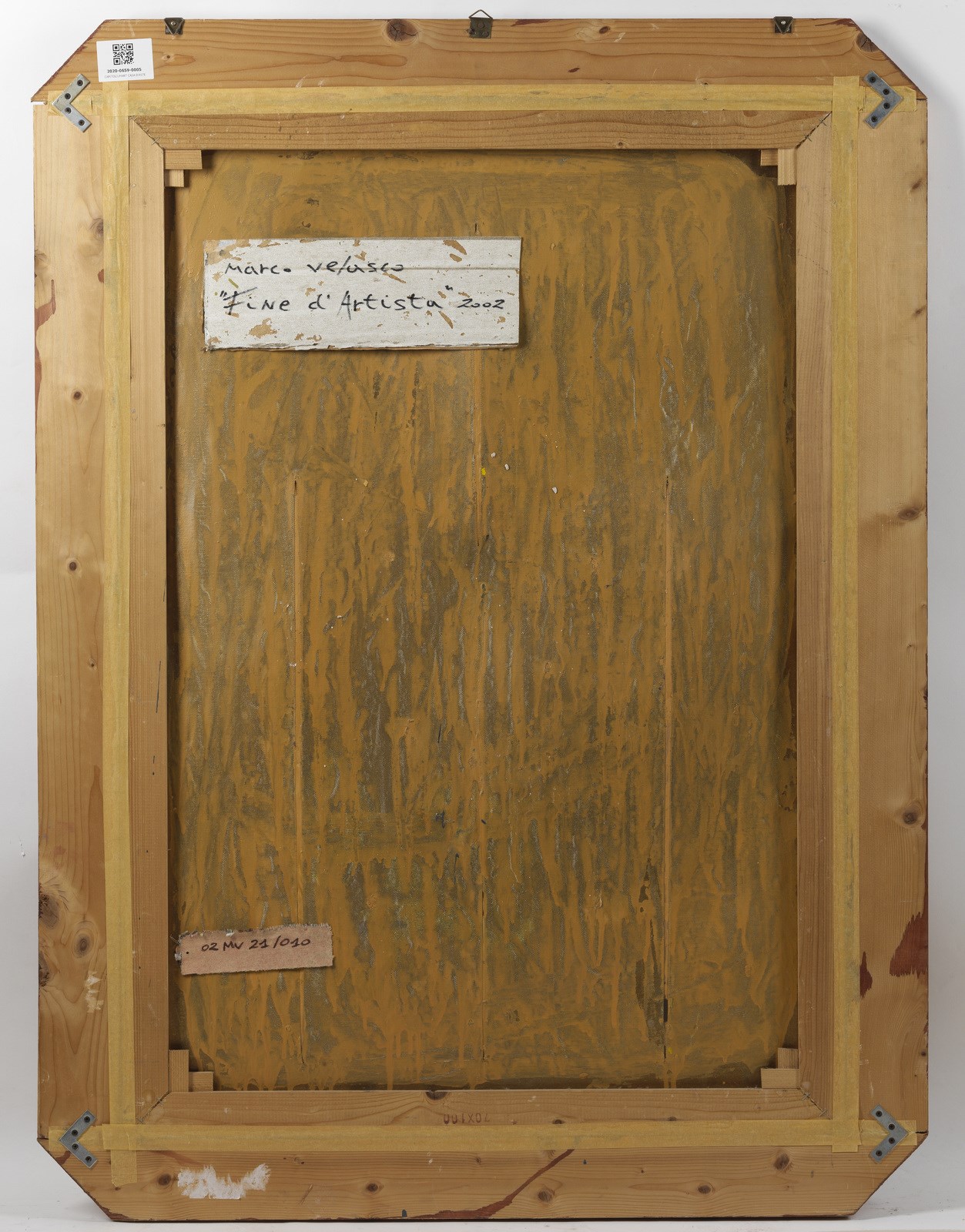 VELASCO MARCO (n. 1965) Fine d'artista. 2002. Tecnica mista su carta su tela. Cm 70,00 x 100,00. Al retro titolo, firma e anno. Autentica dell'artista su fotografia. Cornice presente