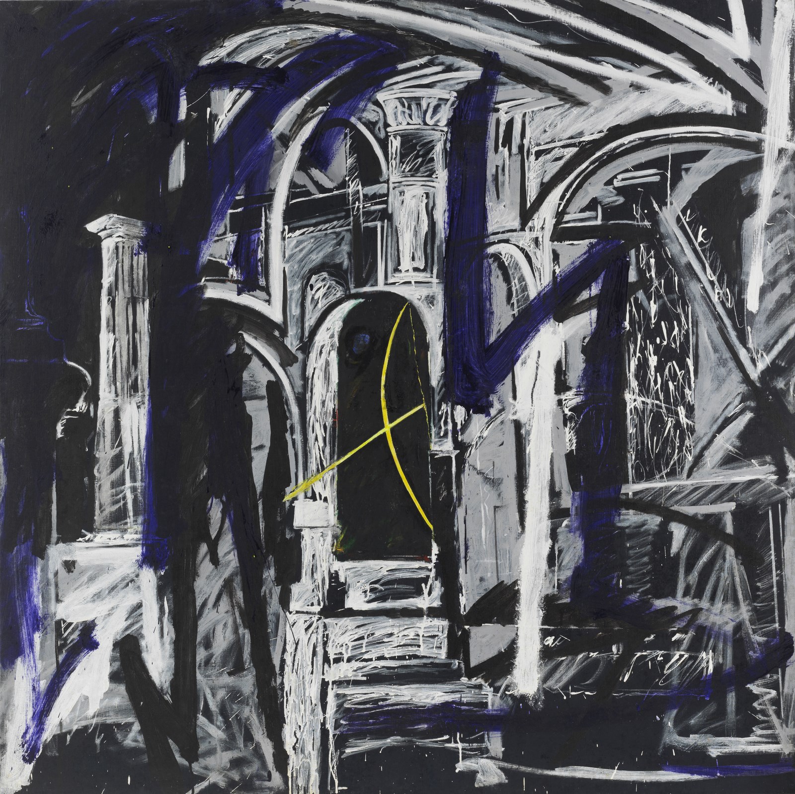 PERRINI AGOSTINO (n. 1955) Senza titolo. Olio su tela . Cm 143,00 x 140,00.