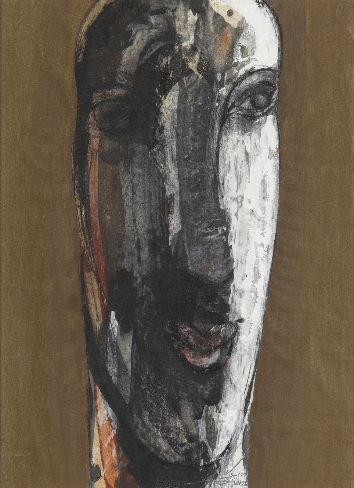 EL-SIWI ADEL (n. 1952) Senza titolo. 1999. Tecnica mista su carta. Cm 47,50 x 66,00. Firma e anno in basso al centro. Cornice presente