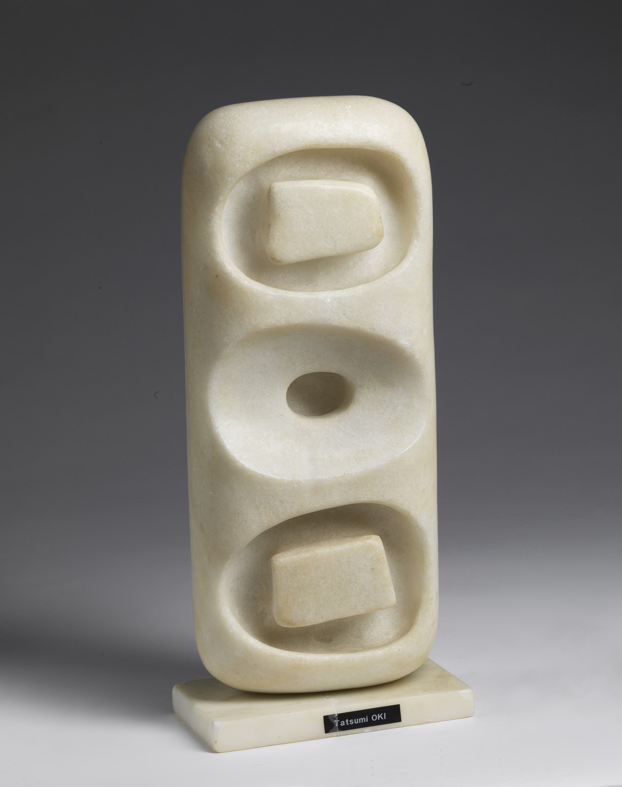 TATSUMI OKI (1948 - 2001) Senza titolo. Marmo bianco. Cm 12,00 x 40,00. Difetti.