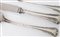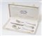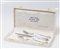 Servizio da dessert per una persona, composto da forchetta e cucchiaio in argento 800, e coltello con manico in argento 800, entro scatola Battistini. Sul retro ogni posata reca punzoni: 800, 23BO. Peso (forchetta e cucchiaio): 60 gr.