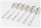 Sei cucchiai in argento con decorazione liberty. Al retro recano punzoni: castello danese e CHF. Peso complessivo: 383 gr.