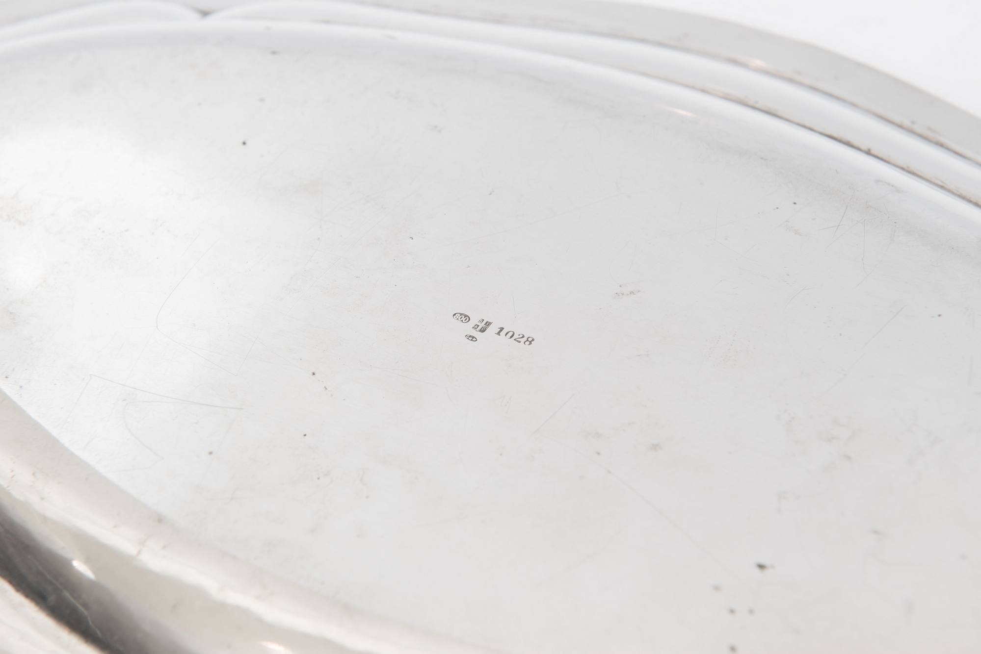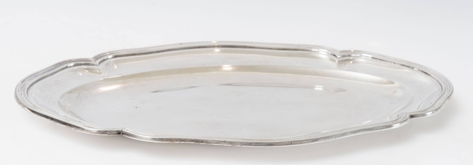 Vassoio con bordo polilobato in argento 800. Sotto la base reca punzoni: 800, Siap, 1028. Peso: 887 gr.