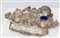 In stile neorinascimentale con mascherone centrale, volute e conchiglie porta pennini. Vasca portapenne e due ampolle portainchiostro in vetro blu.
