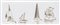 Monovela: Cm 9x6x1. Doppia vela: Cm 8x5x1,5. Veliero: Cm 7x5,3x1. Piccola: Cm 4,5x4x1.