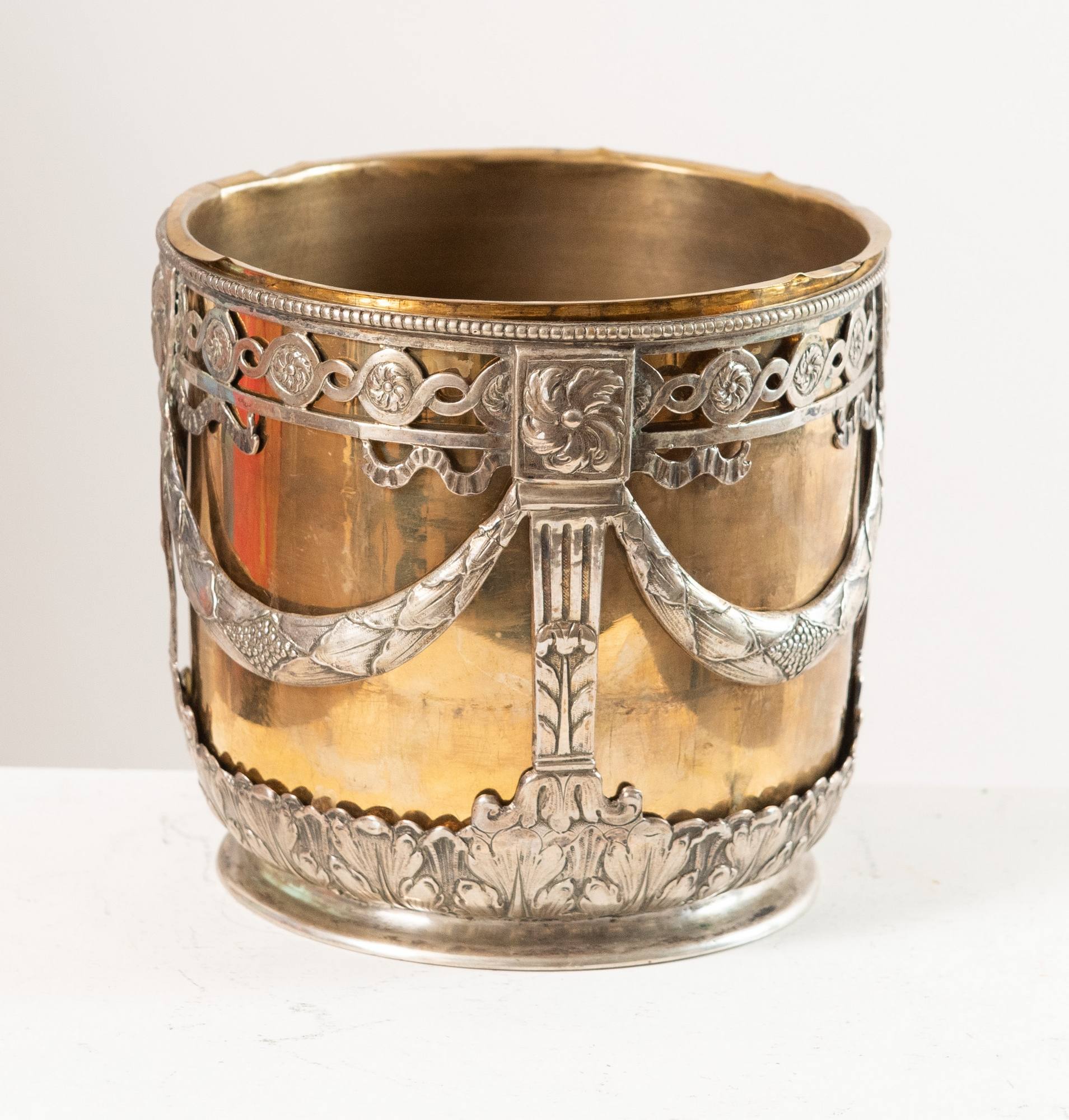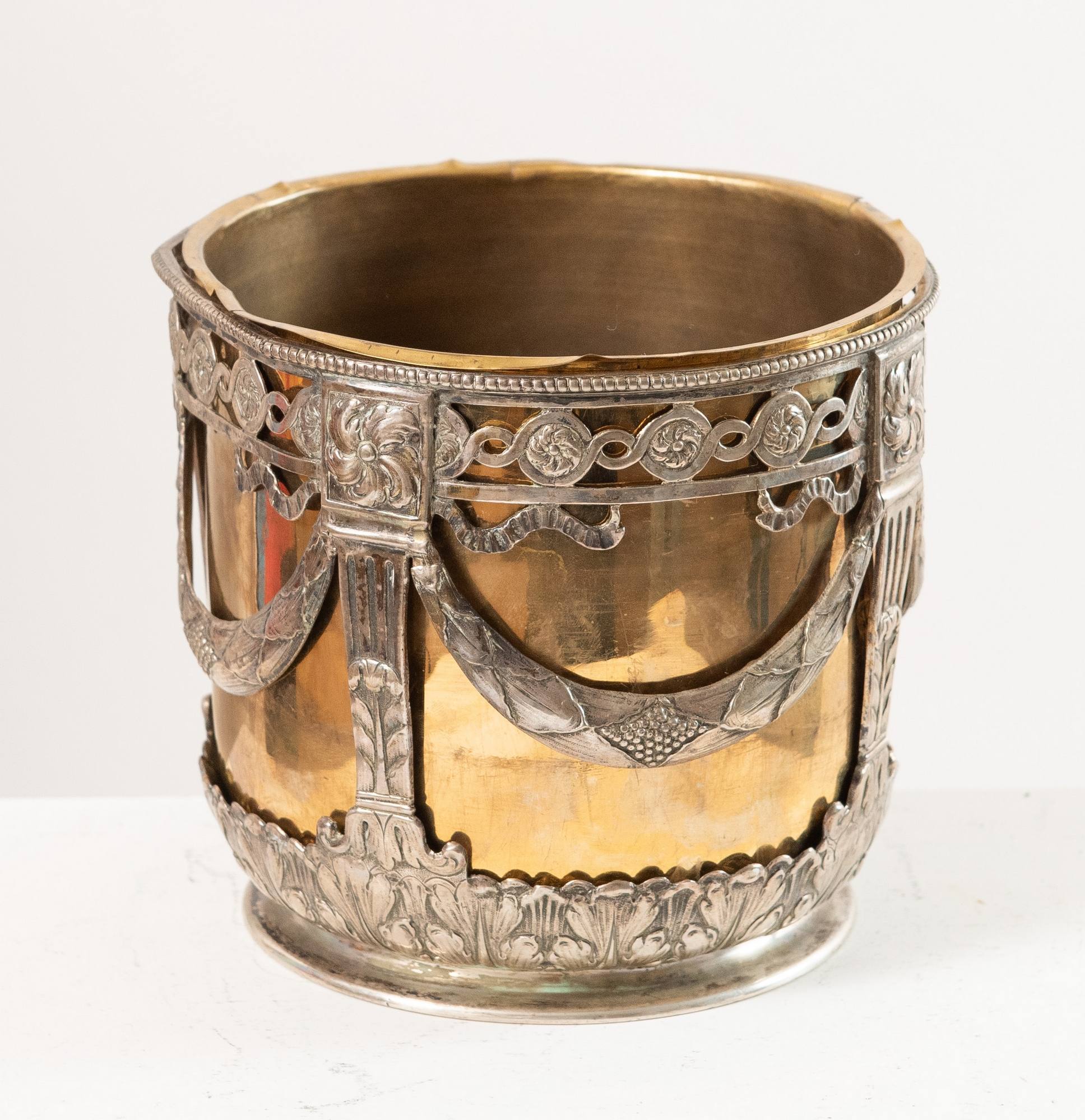 Cachepot in metallo argentato. Francia, XIX secolo. H. cm 13 e Ø cm 15.