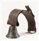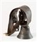 Coppia di campane in bronzo decorato. XIX secolo. Cadauna di Ø cm 11; con cinghia: cm 53.
