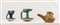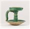 Lotto composto da tre oggetti persiani in ceramica invetriata. Rispettivamente di H cm 12 e Ø 10; H cm 8x15x9,5; H. cm 9 e Ø cm 9. Restauri.