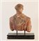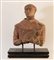 Frammento di scultura in terracotta, raffigurante frate francescano. Basamento in marmo verde alpi. XVIII secolo. Con supporto: cm 51x38,5x17,5.