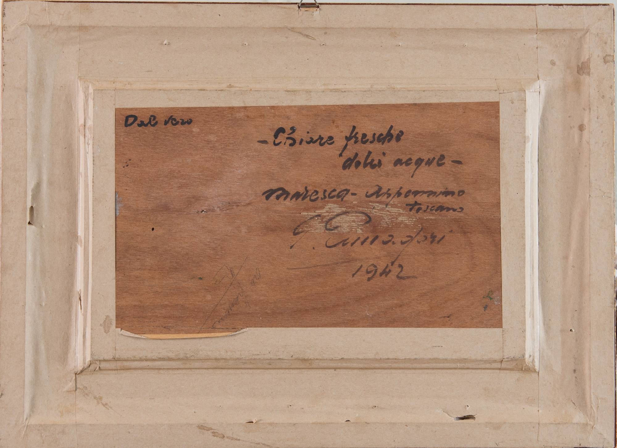 GIULIANO AMADORI (Bologna 1883 - 1972) “Appennino toscano”, 1942. Olio su tavola. Cm 20,5x33,5. Opera firmata in basso a destra G. Amadori. Al retro opera firmata, datata e intitolata.