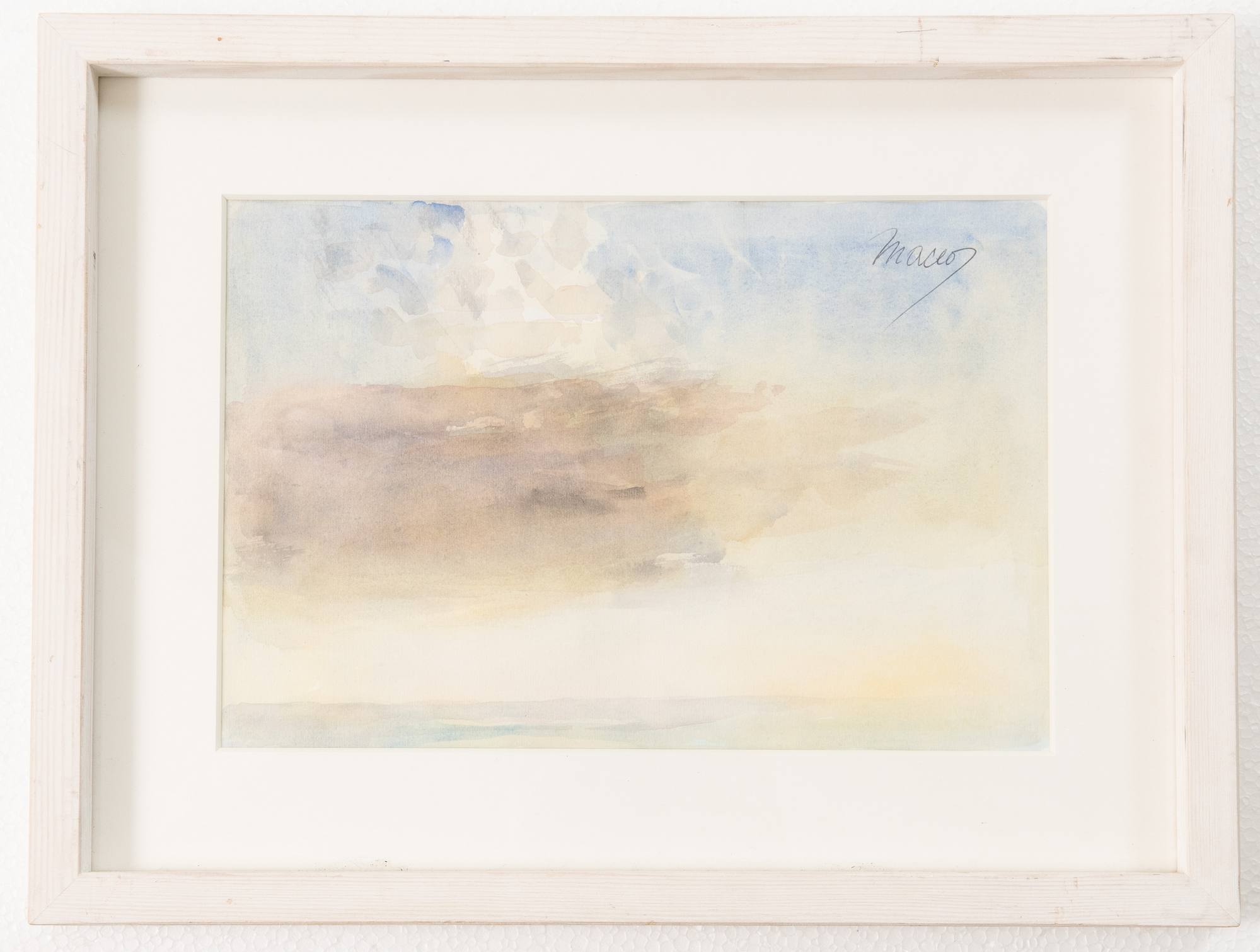 MACEO CASADEI (Forlì 1899 - 1992) “Nubi sul mare calmo”. Acquarello su carta. Cm 21,5x32. Opera firmata in alto a destra Maceo. Opera firmata e intitolata al retro Maceo Casadei Nubi sul mare calmo.