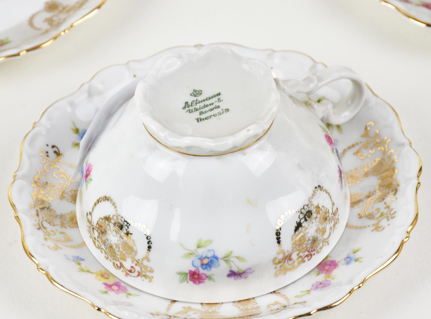 in porcellana marca Seltmann modello Theresia decorata a motivi floreali e filettature in oro zecchino composto da 6 tazze con piattino