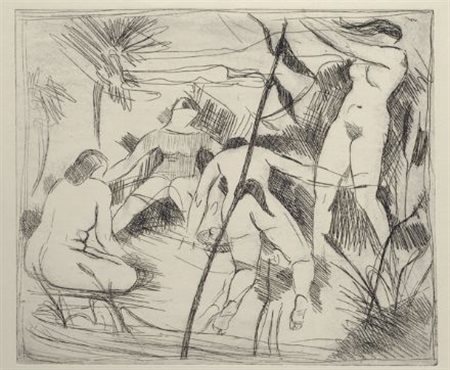 Anonimo del XX sec. Composizione con nudi Puntasecca, mm. 500x350 (foglio);...