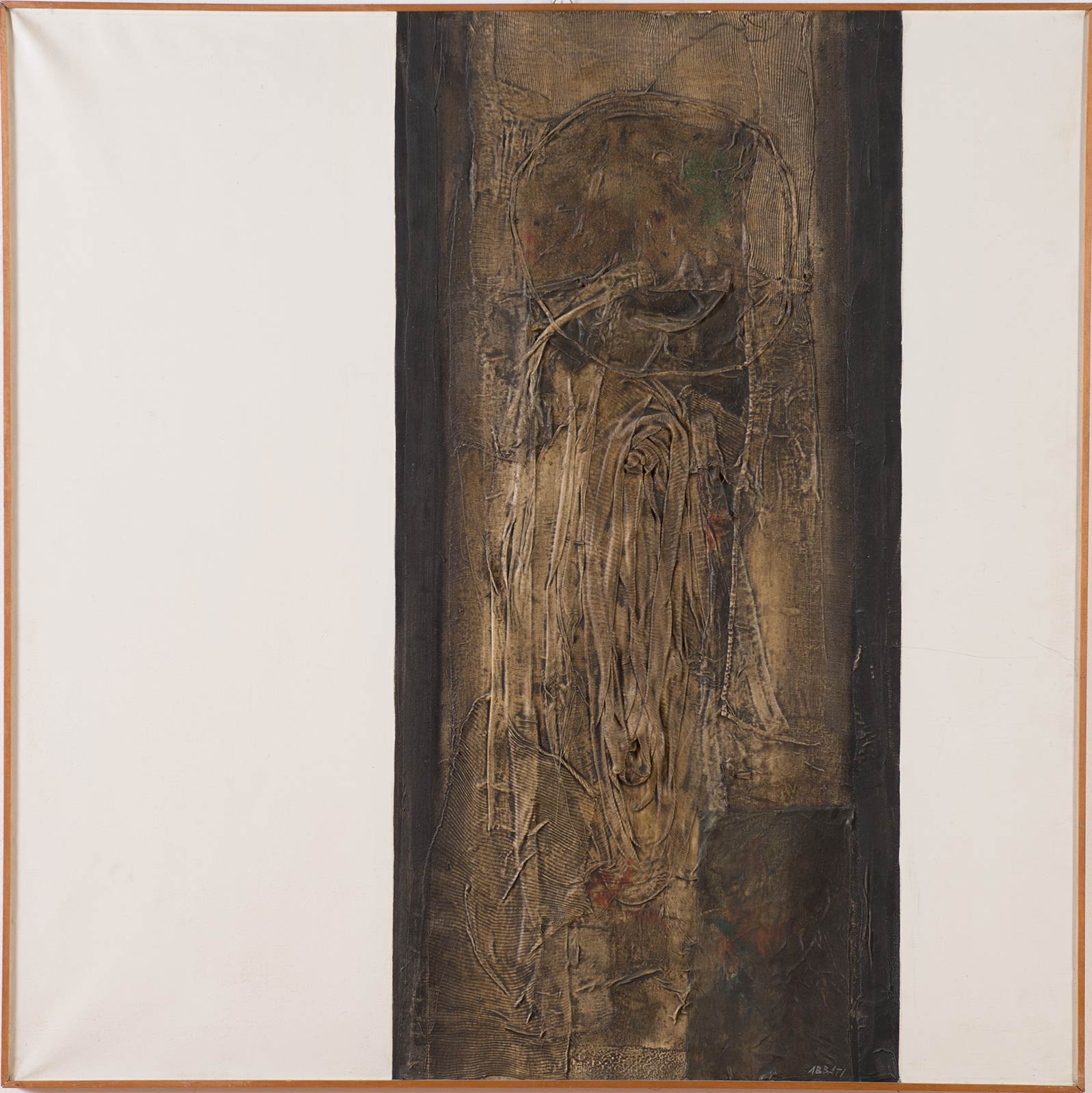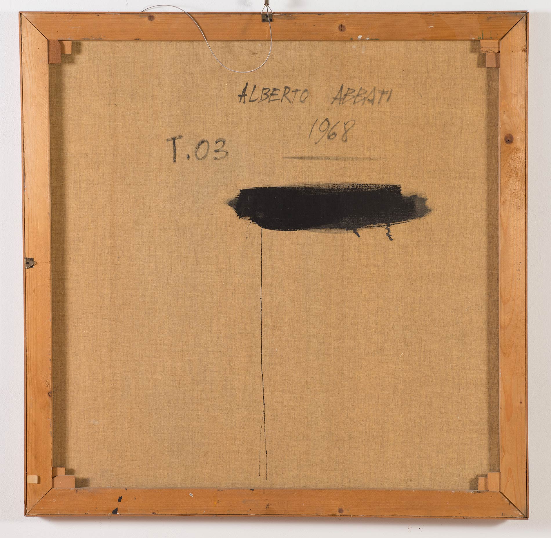 Alberto Abbati (Faenza 1923 - Bologna 2011), “T.03”, 1968. Olio, tecnica mista e collage su tela, firmato in basso Abbati, opera firmata, datata e titolata al retro ‘Alberto Abbati 1968 – T.03, H cm 100x100