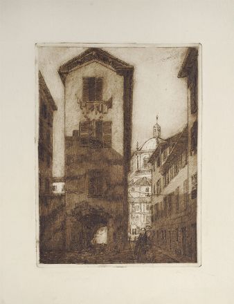 Anonimo del XX sec. Scorcio di Pistoia Acquaforte, mm. 325x290 (foglio); mm. 170x230 (lastra)