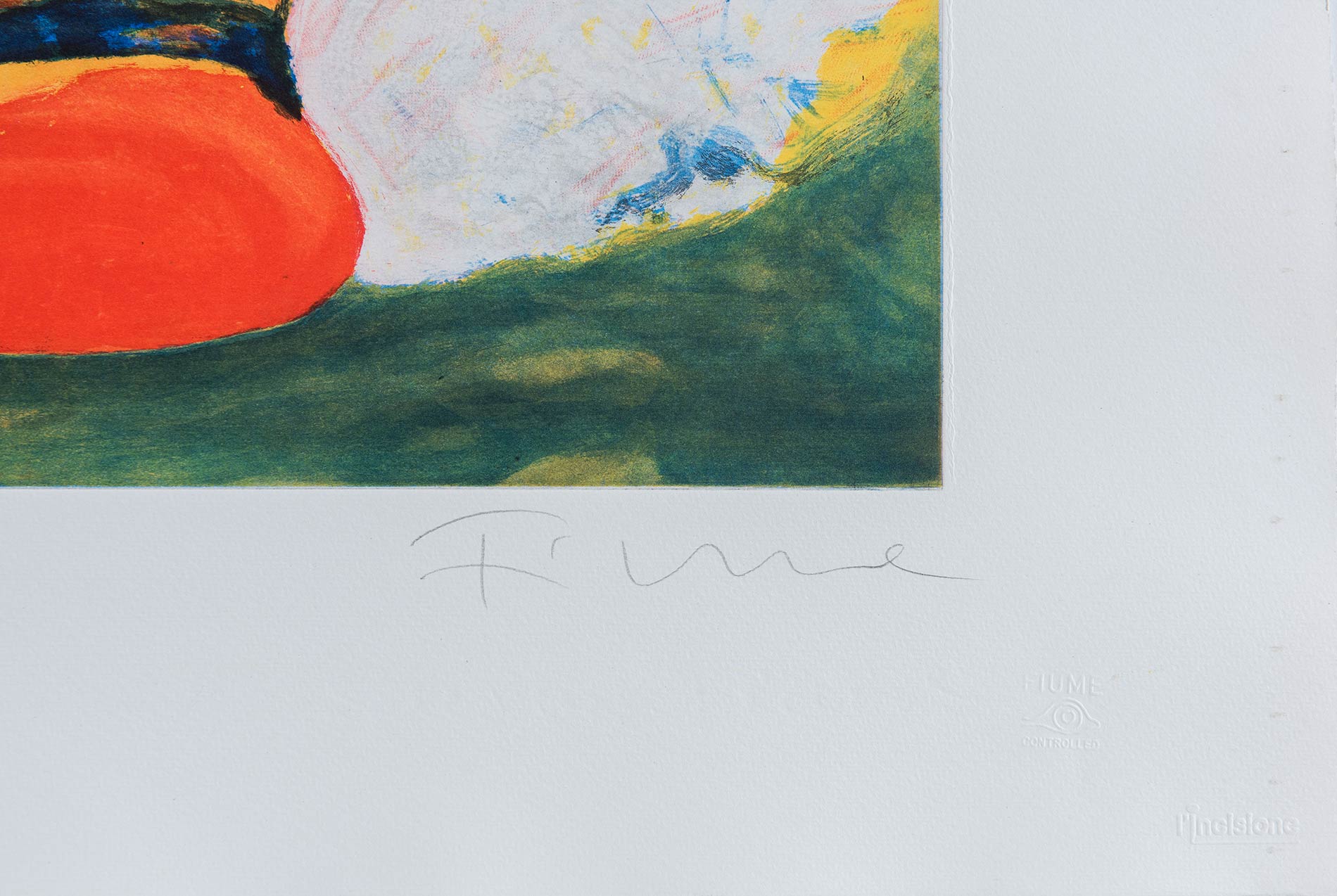 Salvatore Fiume (Comiso 1915 – Milano 1997), “Odalisca”. Incisione a colori su carta, firmata in basso a sinistra Fiume, numero di tiratura in basso a sinistra X/2, timbri a a secco ‘Fiume Controlled’ e ‘L’incisione’ e scritta ‘Salvatore Fiume’, Lastra H cm 38x57 – Foglio H cm 59x78.5