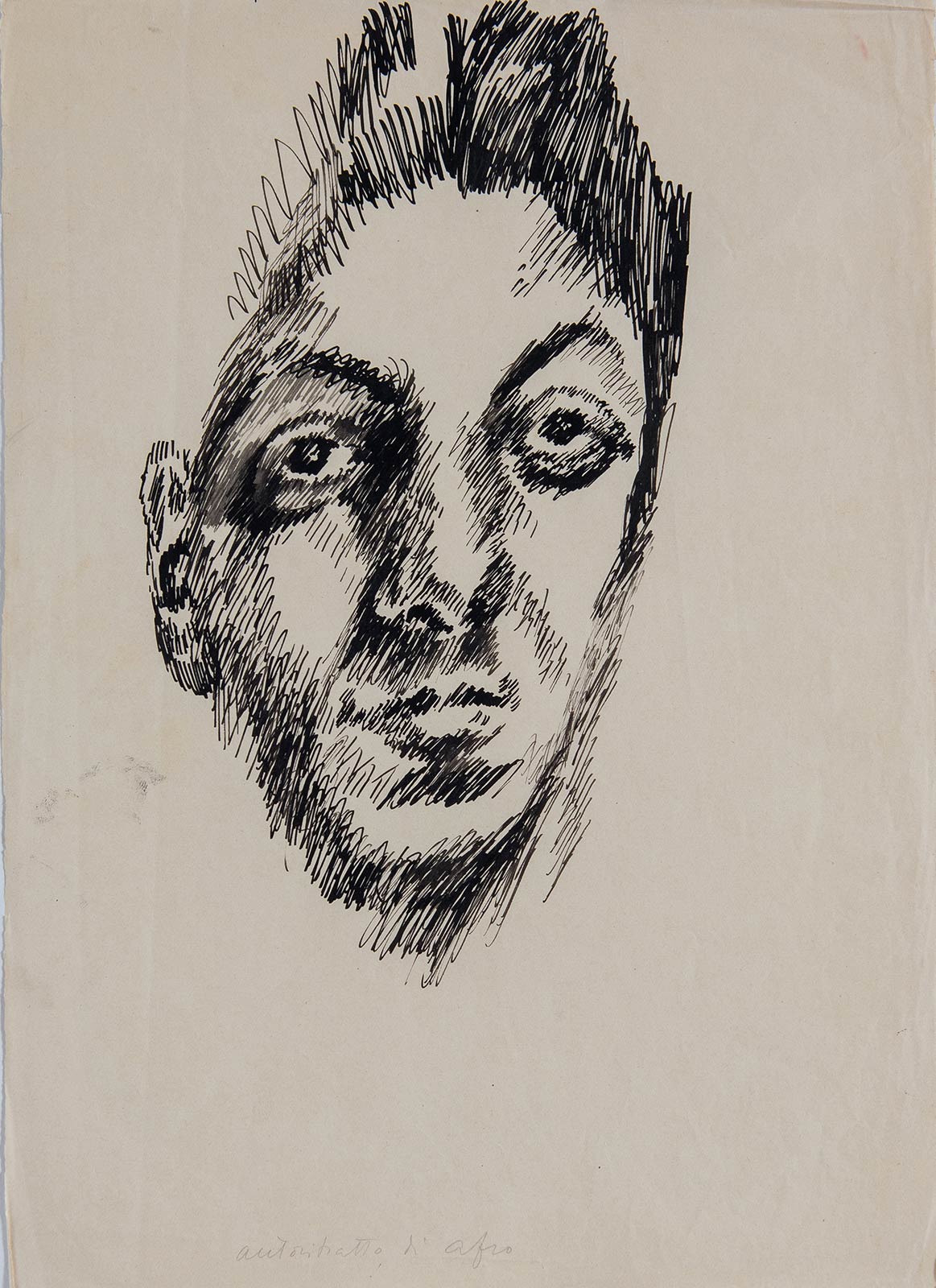 Afro Basaldella (Udine 1912 - Zurigo 1976), 'Autoritratto di Afro'. Penna su carta, titolo in basso al centro ‘Autoritratto di Afro’, H cm 35x25