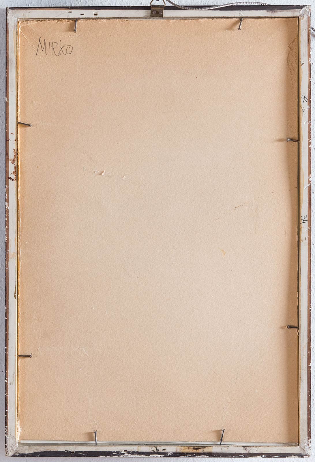 Mirko Basaldella (Udine 1910 – Cambridge 1969), “Composizione”. Pastelli cerati su carta, firma a matita in basso a sinistra Mirko, H cm 15x20 Provenienza: Collezione Aldo Merlo – Udine. Aldo Merlo nacque a Pontebba (Udine) il 26 maggio 1911. Negli anni Sessanta si trasferì a Roma dove si accostò alla pittura da autodidatta, frequentando gli ambienti artistici udinesi della Scuola friulana d’avanguardia fondata da Modotto nel 1928, di cui facevano parte i fratelli Basaldella, Filipponi, Grassi, Pittino, Max Piccini. Strinse un saldo rapporto d’amicizia con Afro Basaldella col quale fu allievo della Scuola Ufficiali a Spoleto dove incontrò il pittore Corrado Cagli. Rientrarono quindi a Udine al 2° Fanteria: due caricature suggellano questo momento della loro comune vita militare, un ritratto di M. e un autoritratto dipinti da Afro sulle ante di un armadio (collezione privata). Da militare partecipò alla campagna d’Etiopia, fu in Tripolitania e nel secondo conflitto mondiale in Croazia, guadagnandosi una medaglia di bronzo al valore. Rientrato a Udine, nel dopoguerra frequentò Zigaina e gli altri artisti del gruppo neorealista di Vicolo Florio. M. posò come modello per Afro nel dipinto Pastore presentato alla Biennale di Venezia del 1936, anno in cui Basaldella firmò anche il Ritratto di Aldo Merlo, esposto alla personale presso la Galleria della Cometa di Roma e riprodotto sulla copertina del catalogo. Nel 1972, per iniziativa di Aldo Merlo in collaborazione con Mario Graziani e Isabella Reale, direttrice della Galleria d’Arte Moderna di Udine, si è proceduto alla redazione del ‘Catalogo Generale Ragionato dei Disegni di Afro’, uscito nel 2006. Fonte: Dizionario Bibliografico dei Friulani.