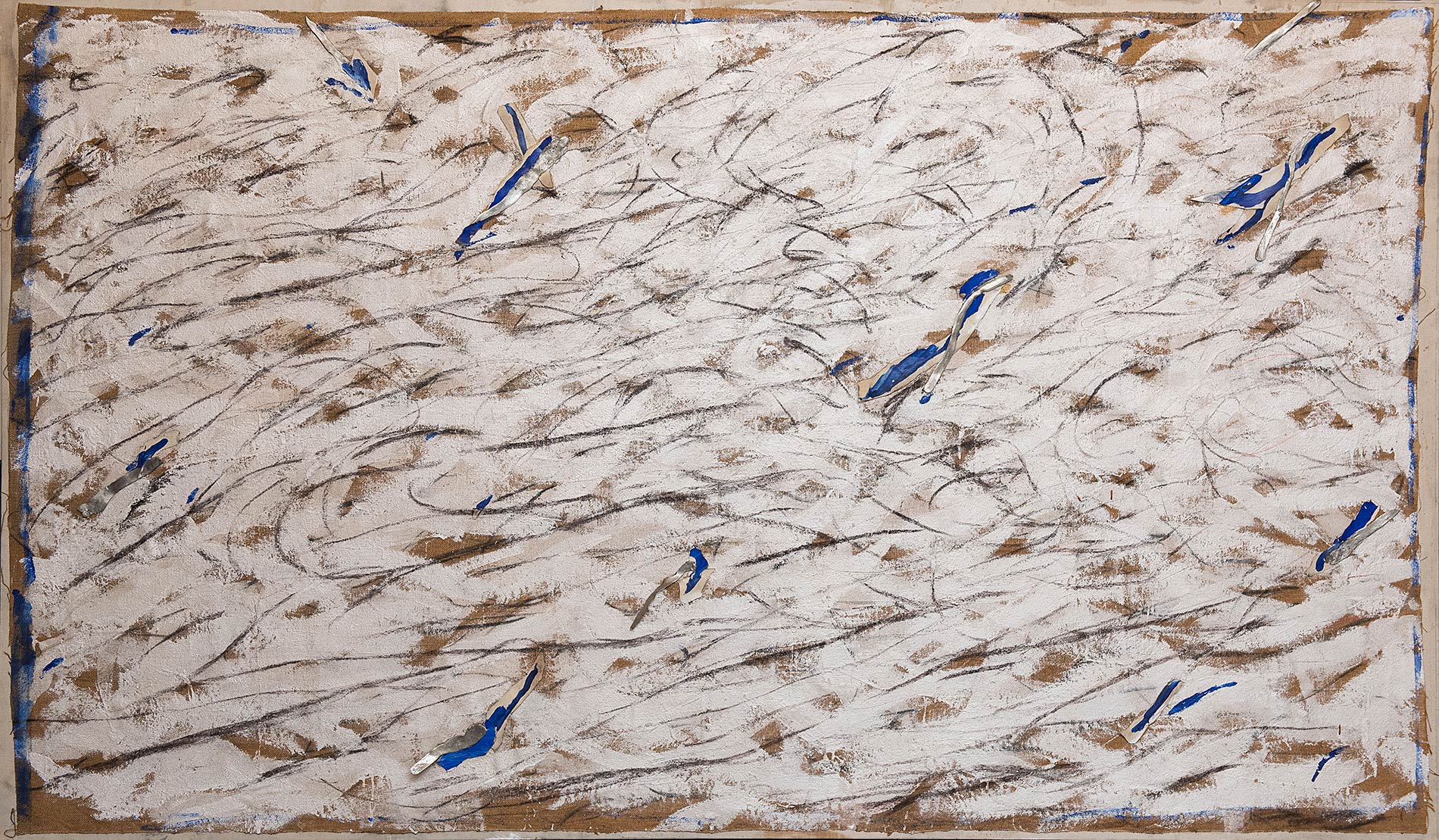 Marco Gastini (Torino 1938), 'Irradiante Grezzo II', 1981. Tecnica mista su tela, firmata e datata al retro Gastini 81, H cm 148x250 Opera accompagnata da certificato di autenticità su fotografia a firma Gastini con timbro della Galleria Studio G7 - Bologna.