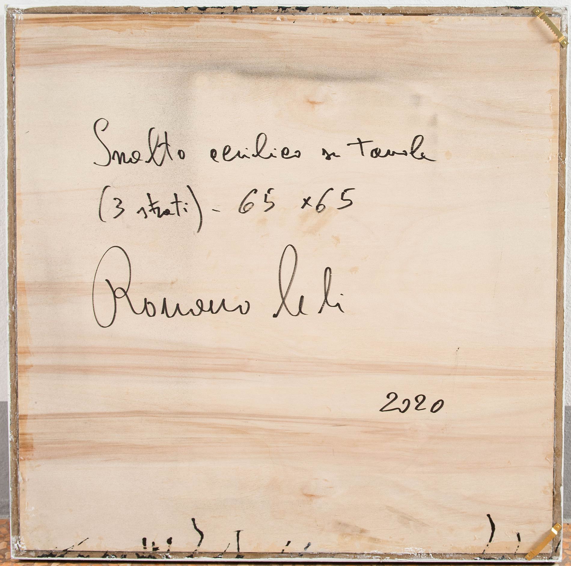 Romano Leli (Aversa 1957), “Senza titolo”, 2020. Smalto acrilico su tavola, data e firma per autentica al retro ‘Smalto acrilico su tavola/(tre strati)-65x65/Romano Leli/2020’, H cm 65x65 Opera accompagnata da certificato di autenticità su fotografia a firma Leli.