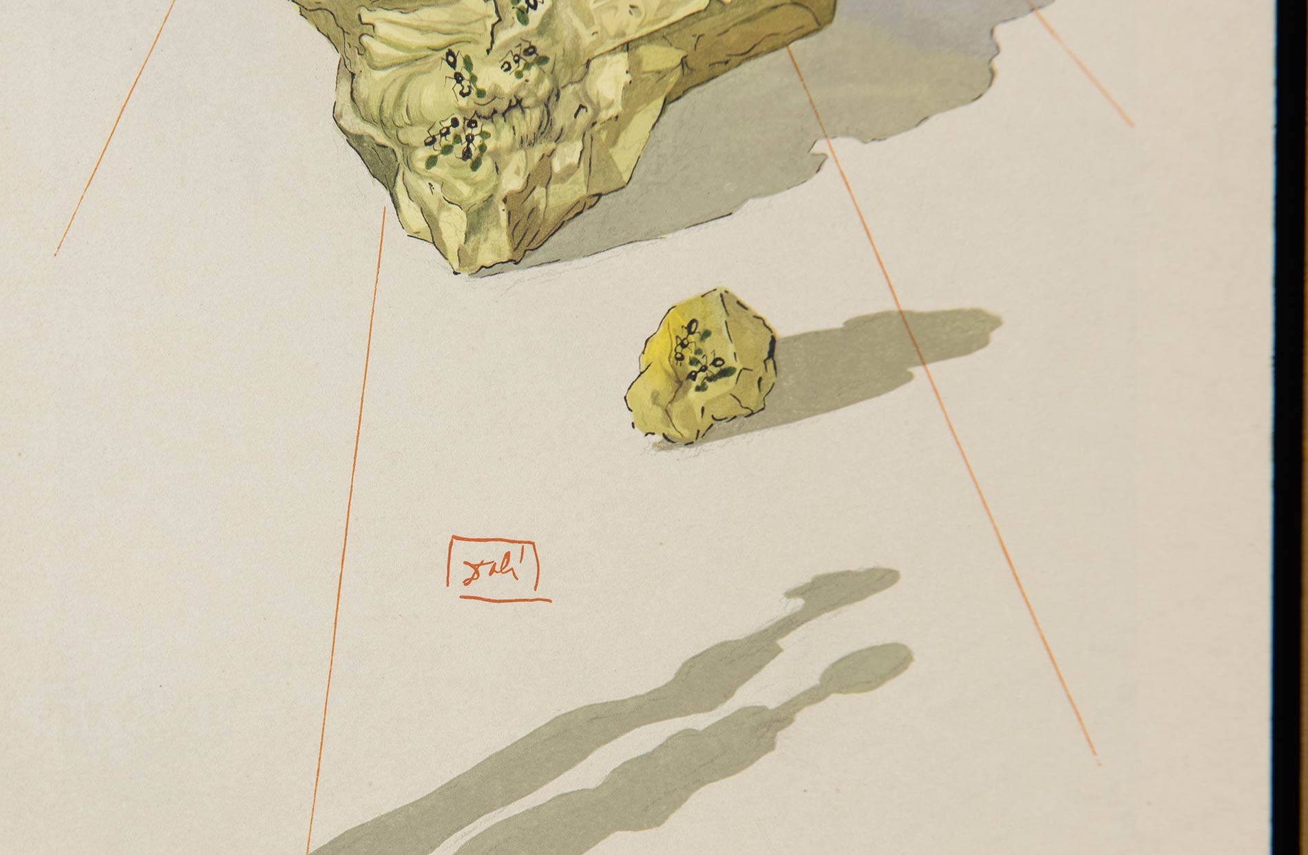 Salvador Dalì (Figueres 1904 – 1989), “Ugolino e Ruggieri” da “La Divina Commedia”. Acquatinta a colori su carta, in basso a destra reca timbro a secco Edizioni Pregiate Roma, al retro reca certificato di autenticità datato 24 Novembre 1974 ed etichetta ‘Edizioni Pregiate – Paradiso Tav. XXXIII – Titolo del Soggetto: Ugolino e Ruggeri – 166/200 e firma dell’editore’, Foglio H cm 27.5x21