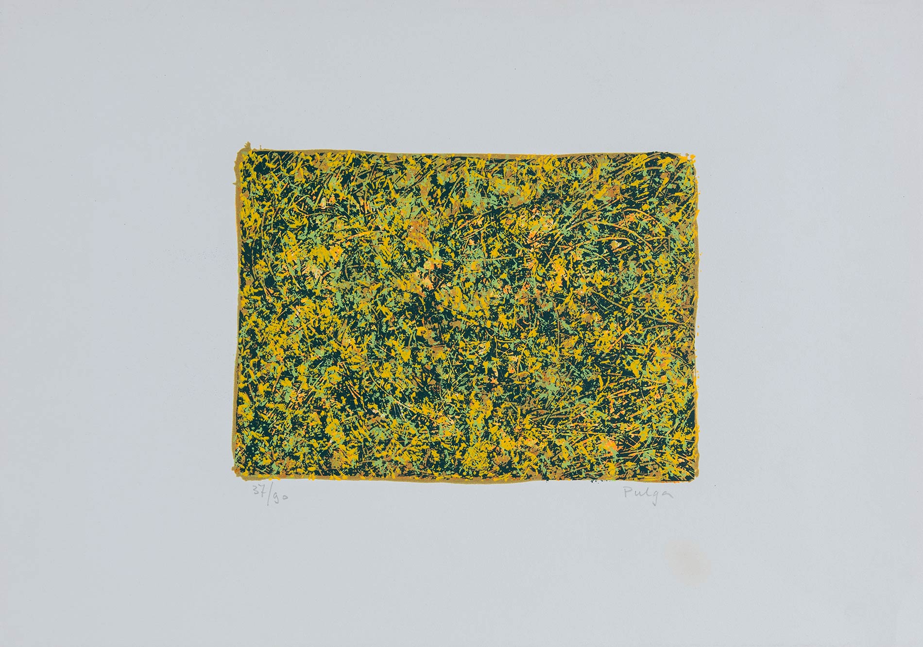 Bruno Pulga (Bologna 1922 – 1992), “Senza Titolo”. Litografia a colori su carta, firmata in basso a destra Pulga, numero di tiratura in basso a sinistra 37/90, Lastra H cm 18x25 – Foglio H cm 35x50