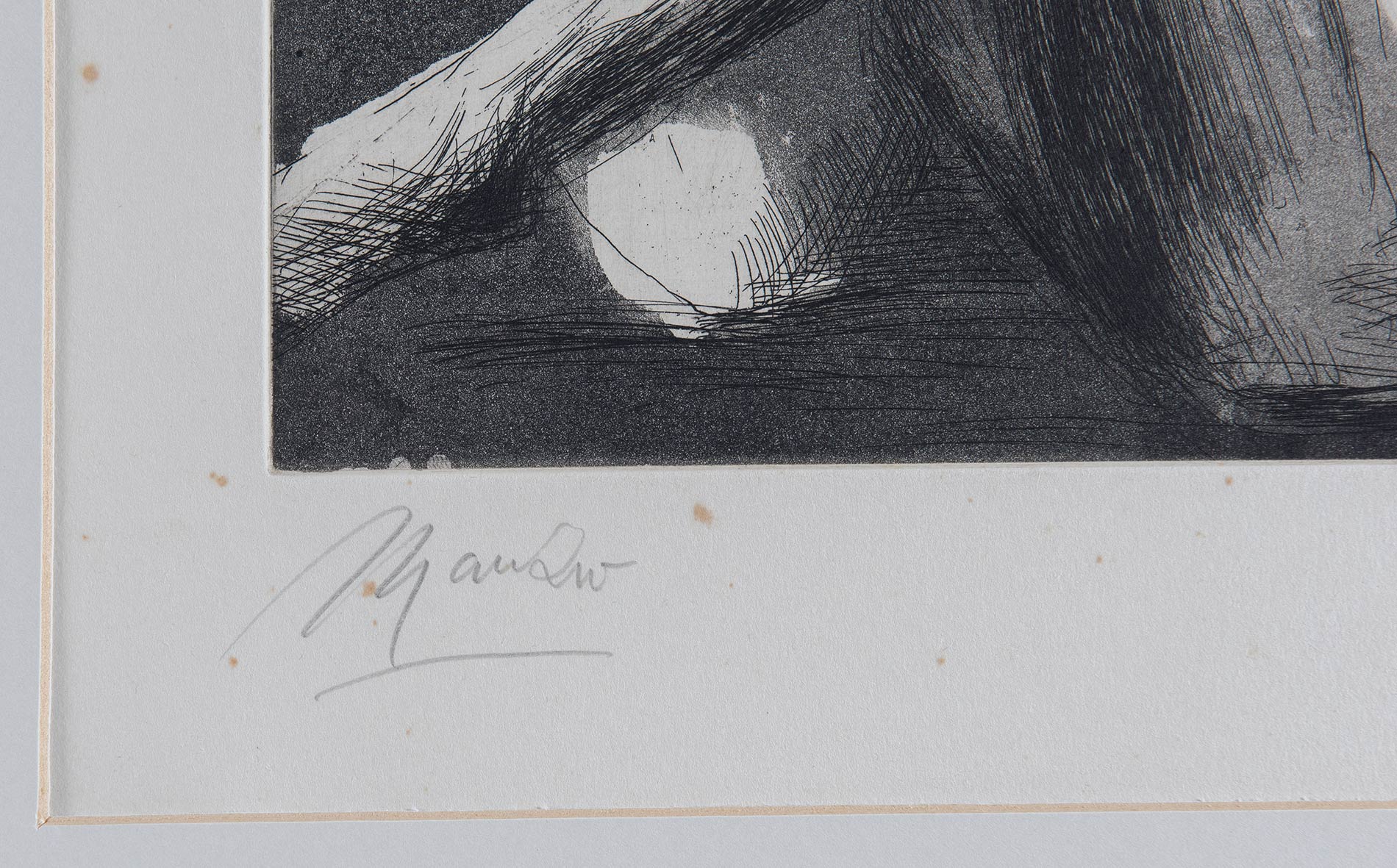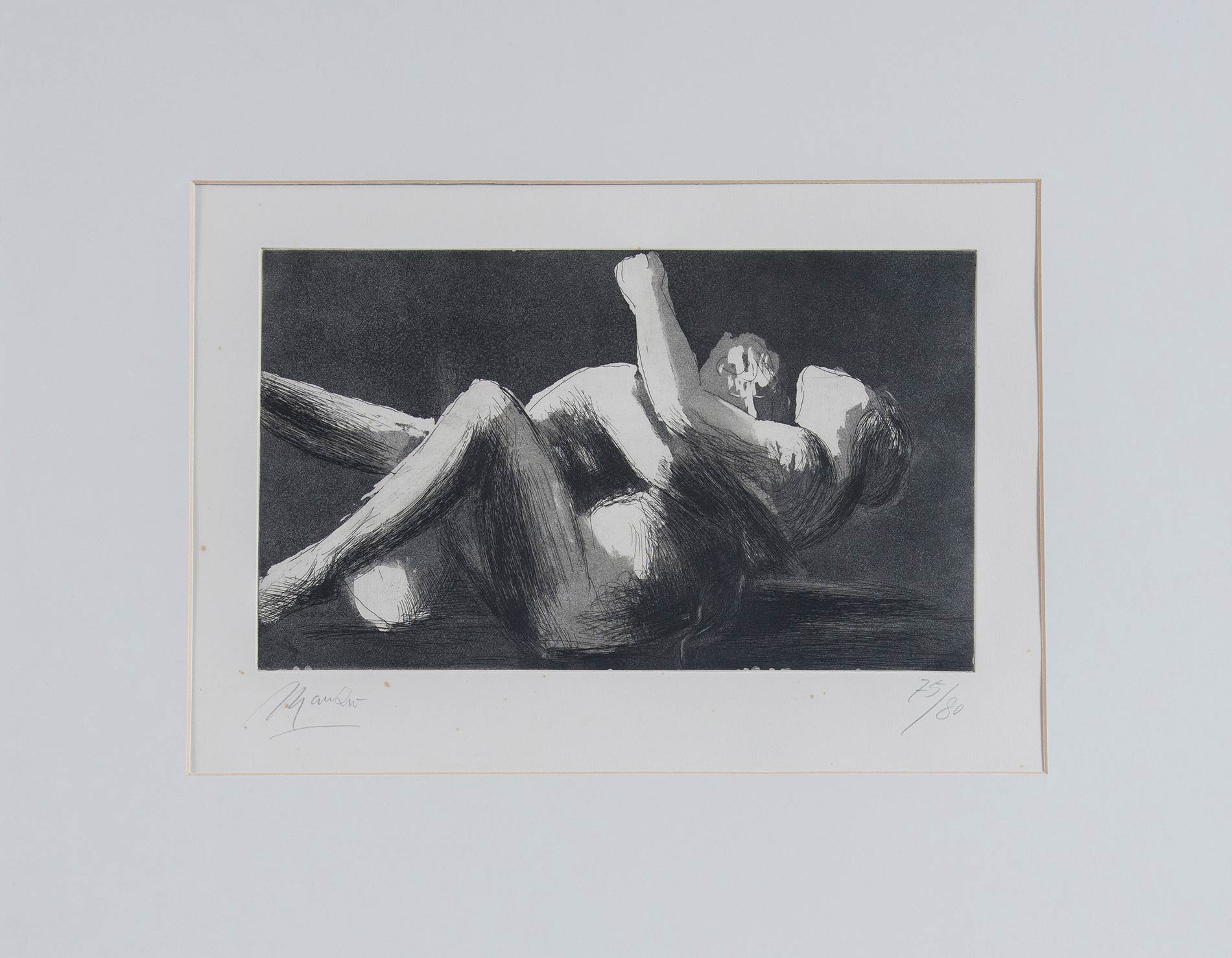 Giacomo Manzù, (Bergamo 1908 – Roma 1991), “Gli amanti”. Litografia su carta, firmata in basso a sinistra Manzù, numero di tiratura in basso a destra 68/150, timbri a secco in basso a sinistra ‘AA VignaAntoniana Stamperia D’Arte’ e altro timbro a secco, Lastra H cm 18x22.5 – Foglio H cm 50x69.5