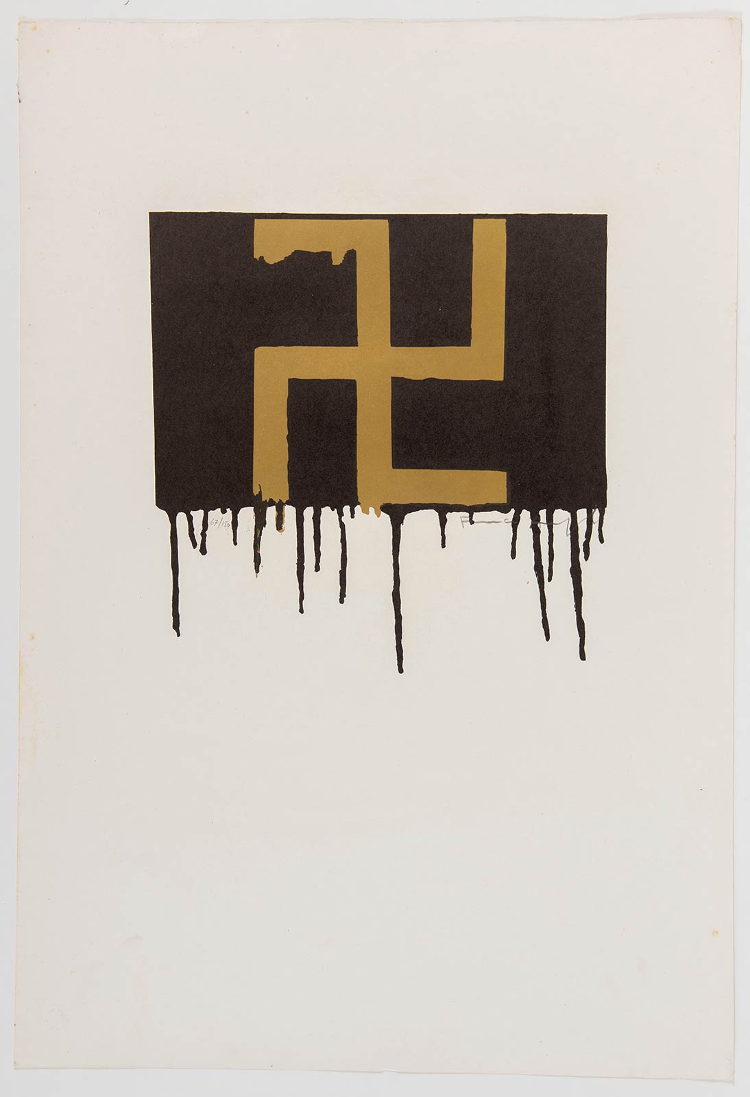 Franco Angeli (Roma 1935 – 1988), “Senza titolo”. Litografia a colori su carta, firmata in basso a destra Franco Angeli, numero di tiratura in basso a sinistra 67/150, timbro a secco in basso a sinistra ‘Lo sotriele spa’, H cm 70x49.5