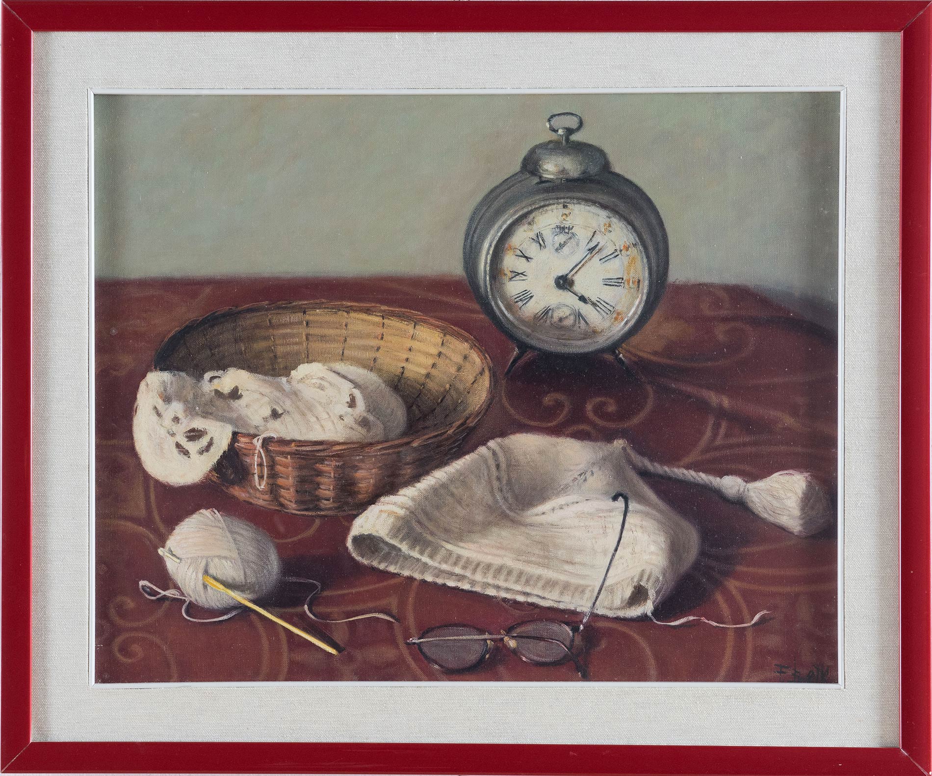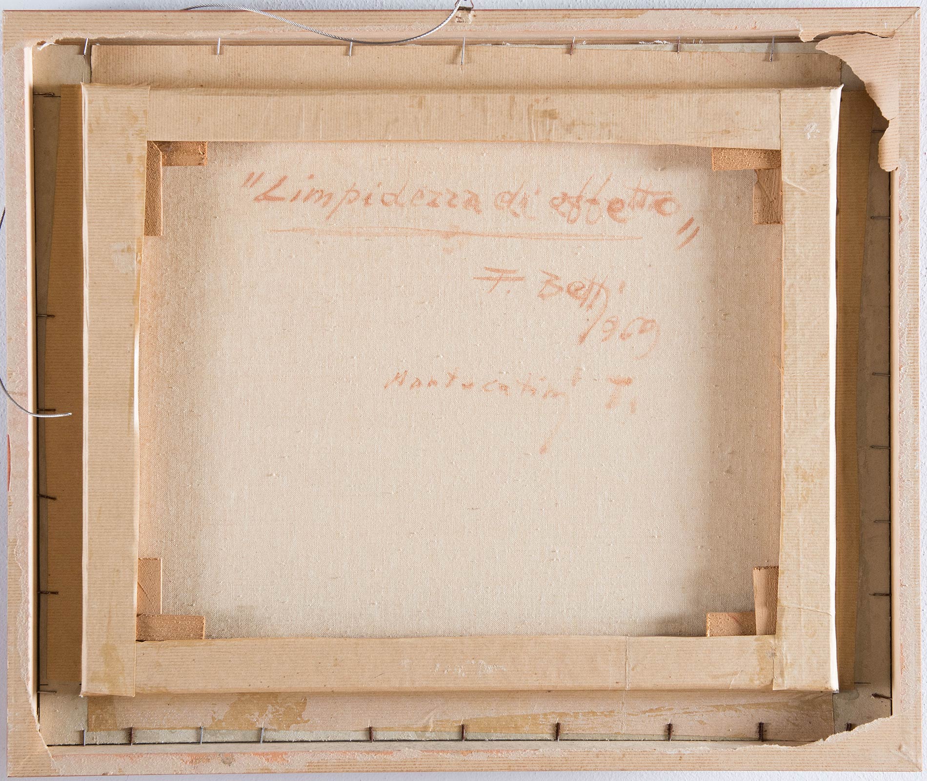 Franco Betti (Lucca 1925), “Limpidezza di affetto”, 1969. Olio su tela, firmato in basso a destra F Betti, al retro reca titolo firma e data ‘Limpidezza d’affetto/F.Betti/969/Montecatini 71’, H cm 40x50