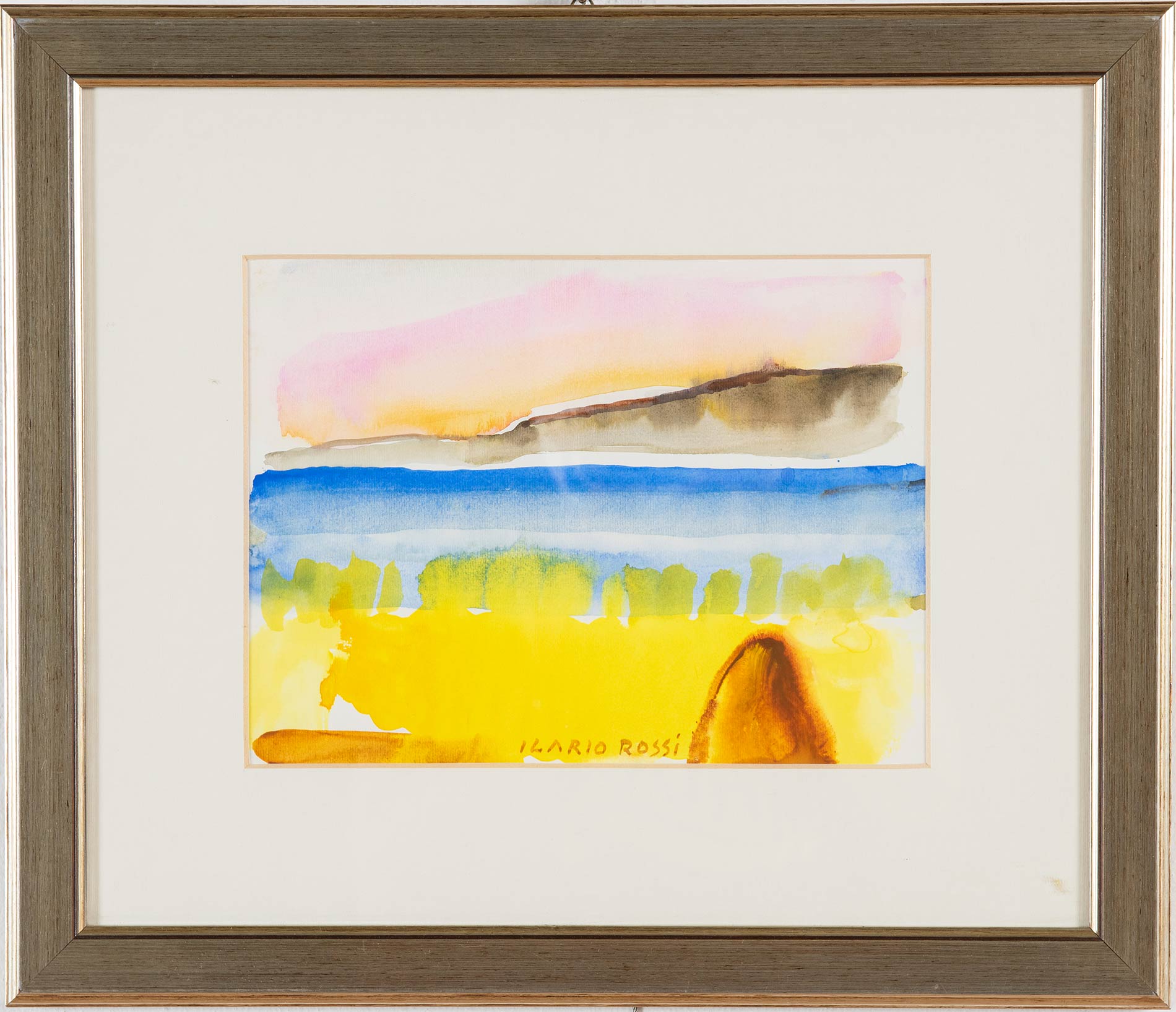 Ilario Rossi (Bologna 1911 – 1994), “San Luca”. Acquerello su carta, firmato in baso al centro Ilario Rossi, H cm 21x28 Al retro reca timbro Accademia Cattani – Bologna.