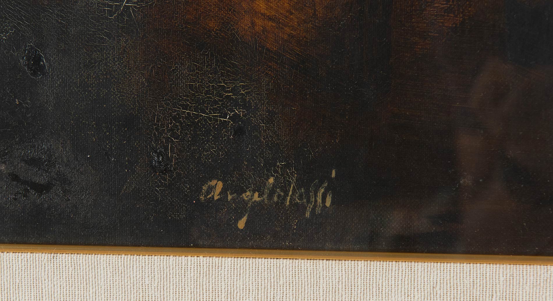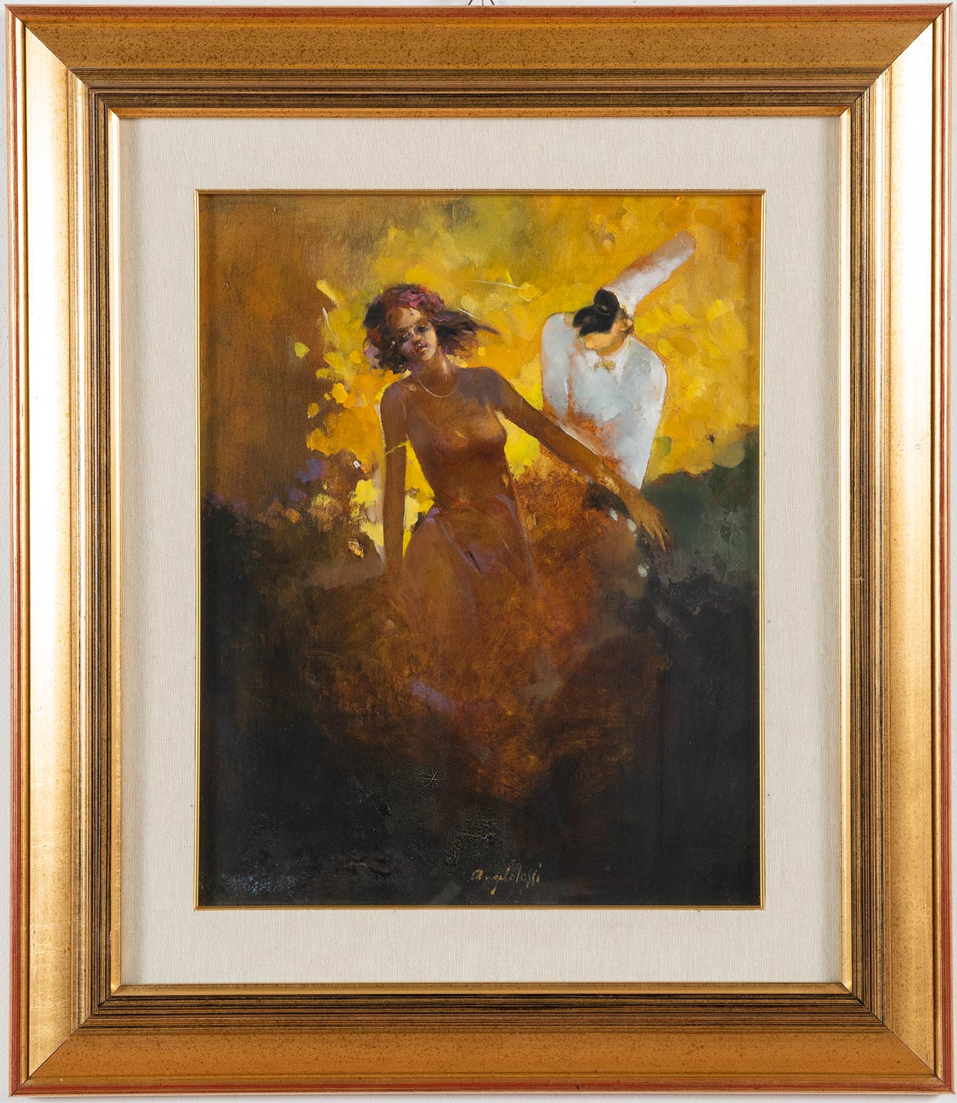 Angelo Tassi (Bologna 1937), “Maschere”. Olio su cartone intelato, firmato in basso al centro Angelo Tassi, H cm 48x38.5