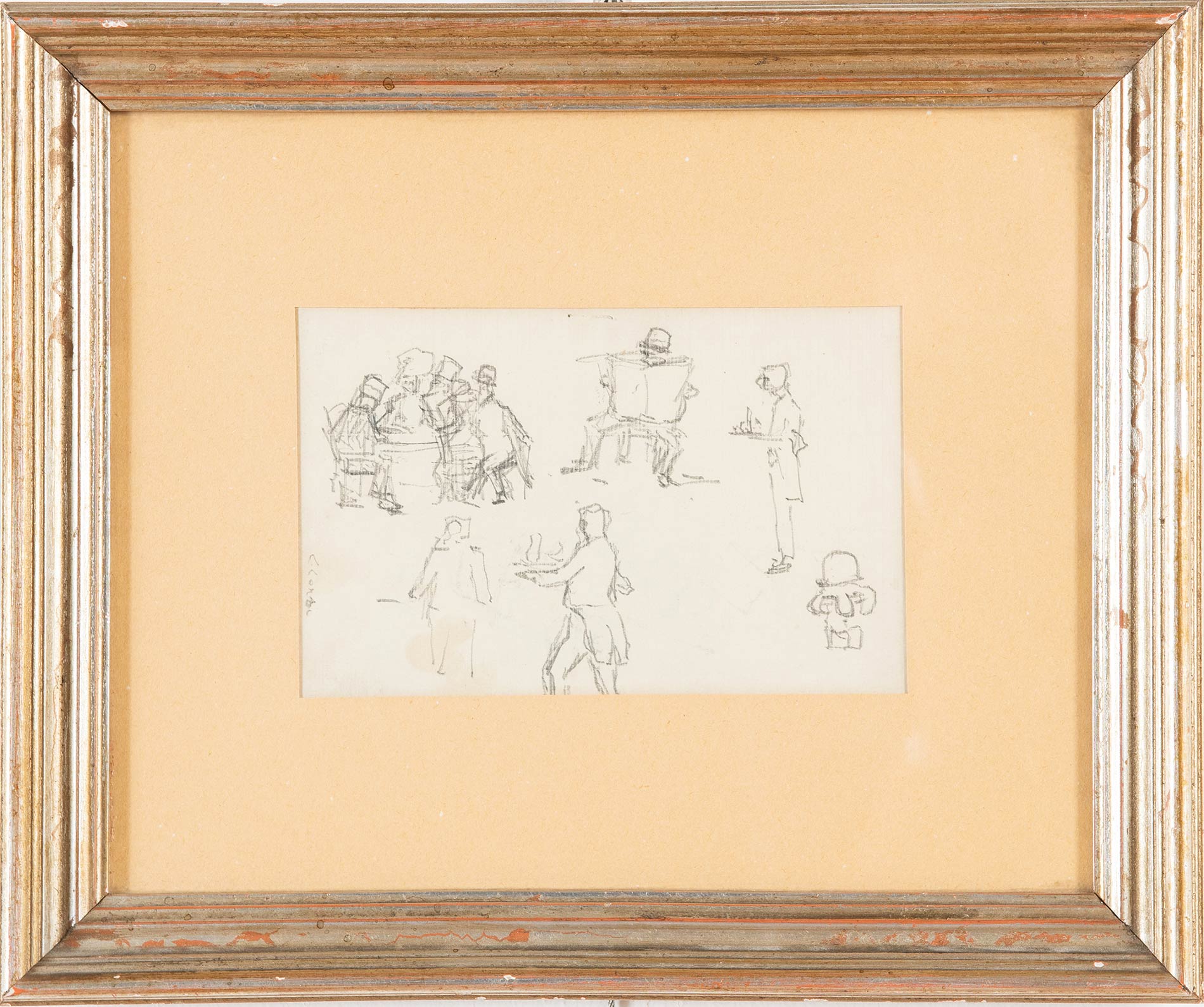 Carlo Corsi (Nizza 1879 – Bologna 1966), “Studi di figure”. Matita su carta recto-verso, firmato a lato a sinistra C. Corsi, H cm 24x19