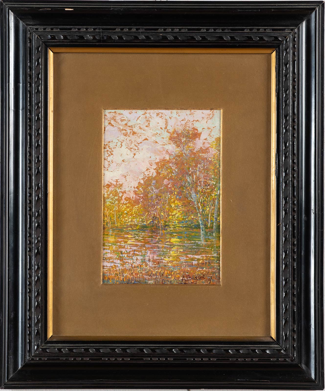 Augusto Burchi (Firenze 1853 – 1919), “Paesaggio”, 1891. Olio su cartone, firmato e datato in basso a destra A. Burchi 91, H cm 23x15.5