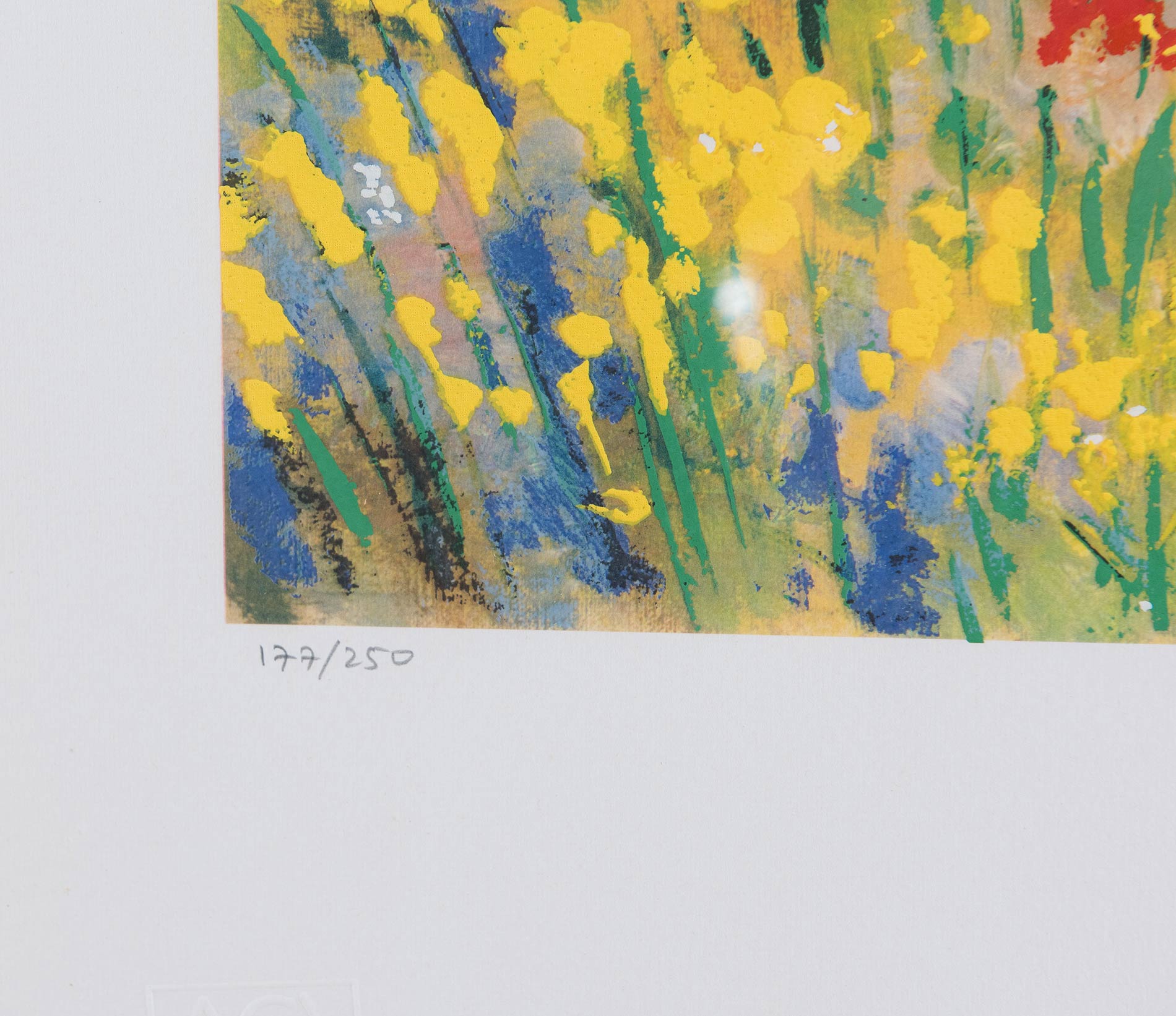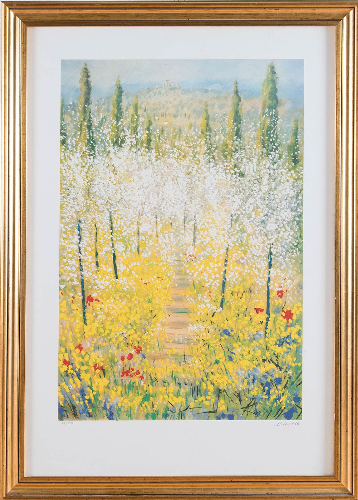 Michele Cascella (Ortona 1892 – Milano 1989), “Ginestre”. Litografia a colori su carta, firmata in basso a destra M. Cascella, numero di tiratura in basso a sinistra 177/250, timbro a secco in basso a sinistra AG\, Lastra H cm 75x50 – Foglio 93x63