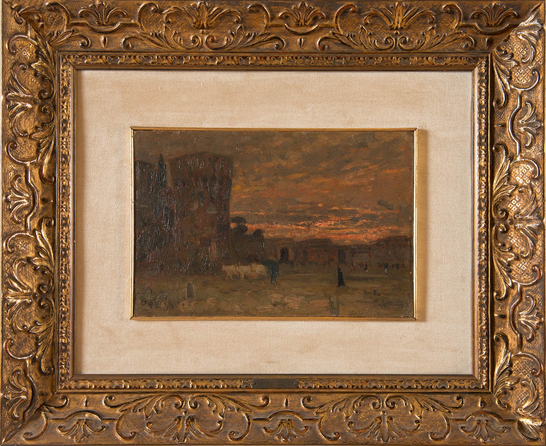 Beppe Ciardi (Venezia 1875 – Quinto di Treviso 1932), “Rocca di Lugo di Romagna”, 1917/18. Olio su cartone, firmato in basso a sinistra Ciardi, al retro reca luogo e data a matita ‘Lugo di Romagna/1918’, H cm 20.5x30.5 Opera accompagnata da certificato di autenticità L’Ariete Galleria d’Arte - Bologna con timbro della Galleria. Provenienza: Collezione Privata – Bologna.