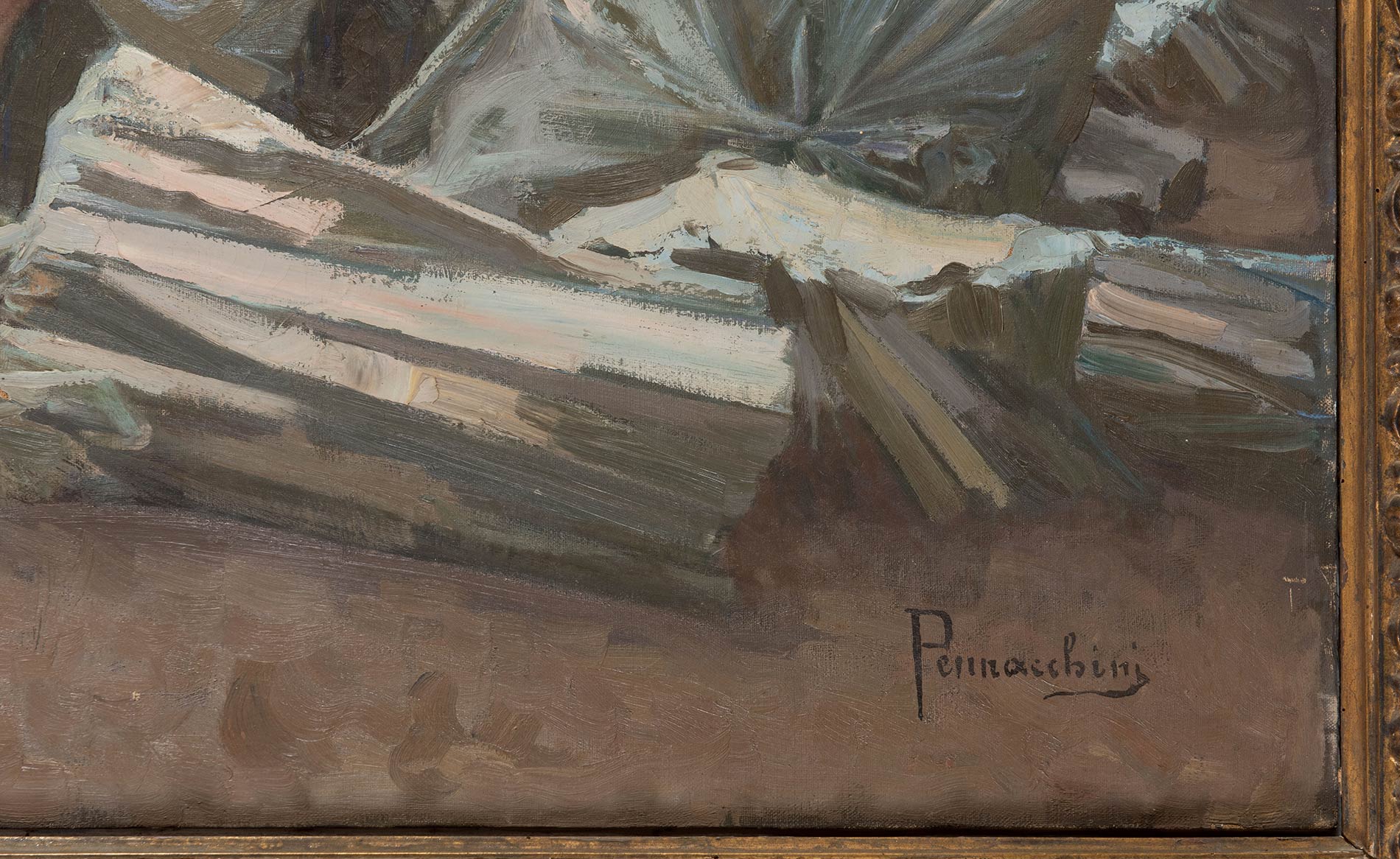 Domenico Pennacchini (Roma 1860 – 1917), “Naufrago”. Olio su tela, firmato in basso a destra Pennacchini, al retro reca etichetta, H cm 80x200