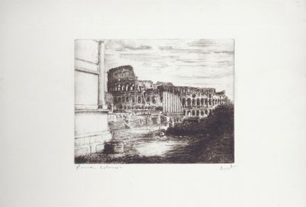 CERT Roma, il Colosseo Acquaforte, mm. 345x500 (foglio); mm. 195x250 (lastra) Firma in basso a destra.