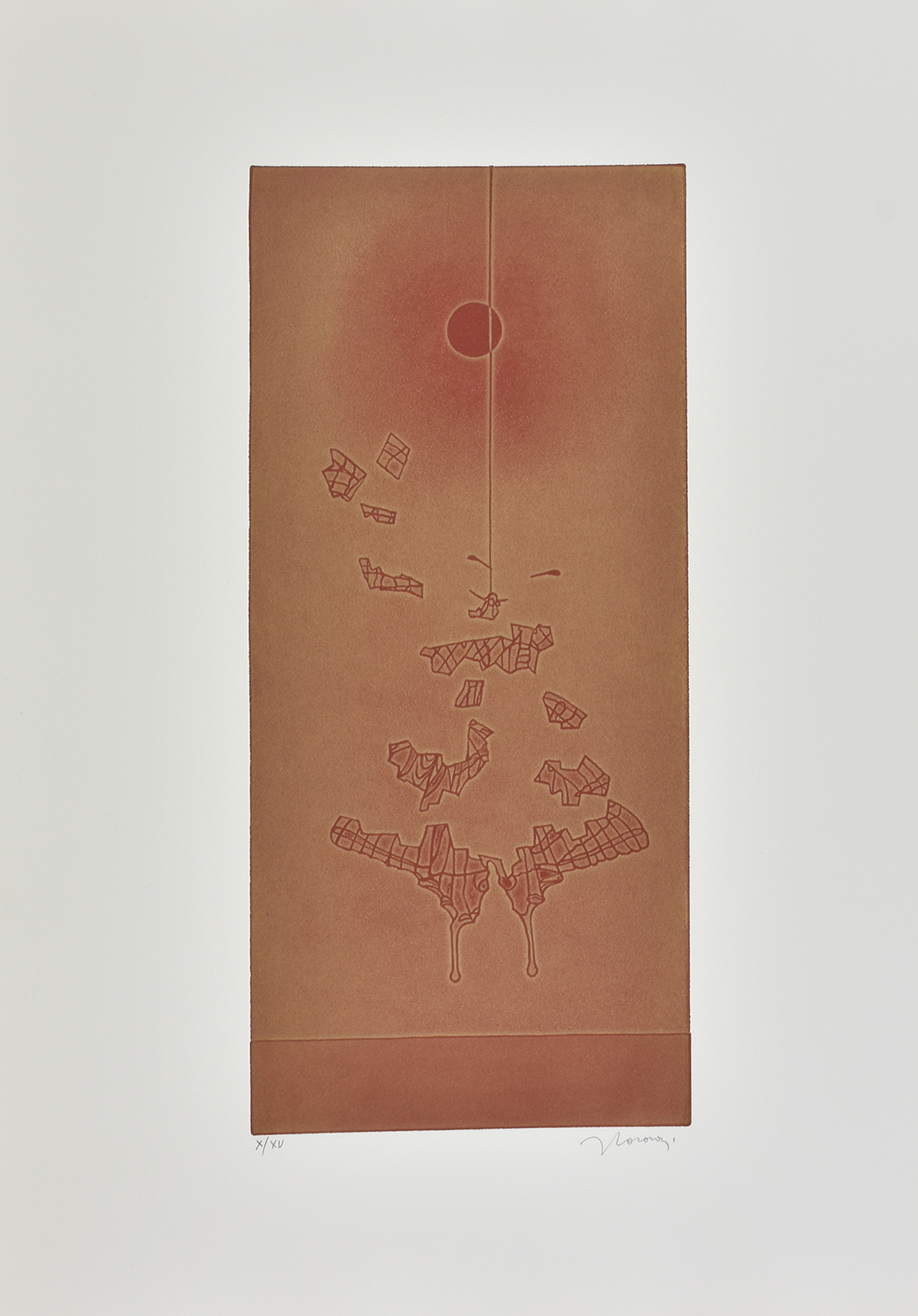 Francesco Casorati FARFALLA E SOLE ROSSO incisione su carta, battuta cm...