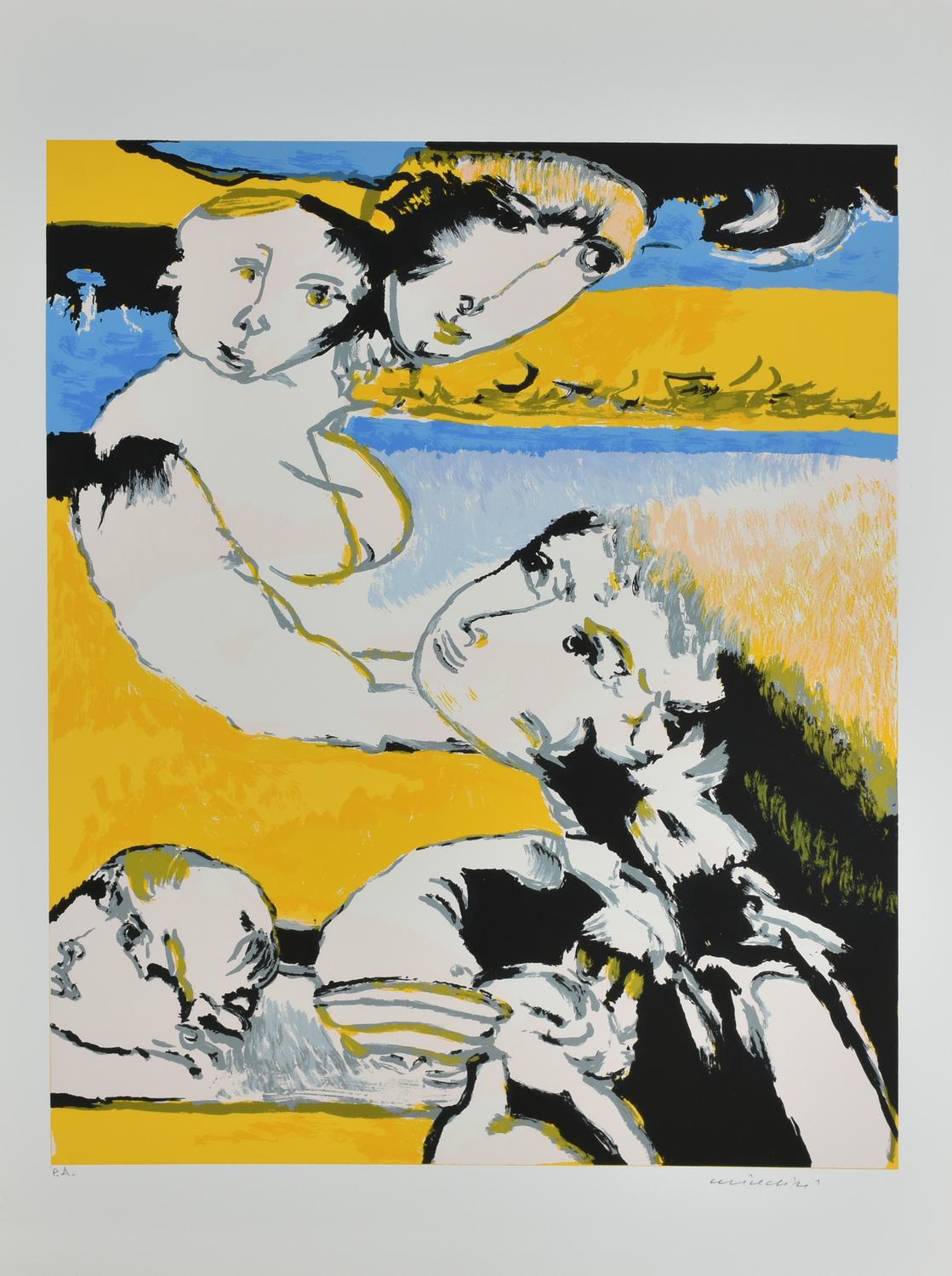 Remo Brindisi FIGURE litografia su carta, cm 70x50; es. prova d'autore firma