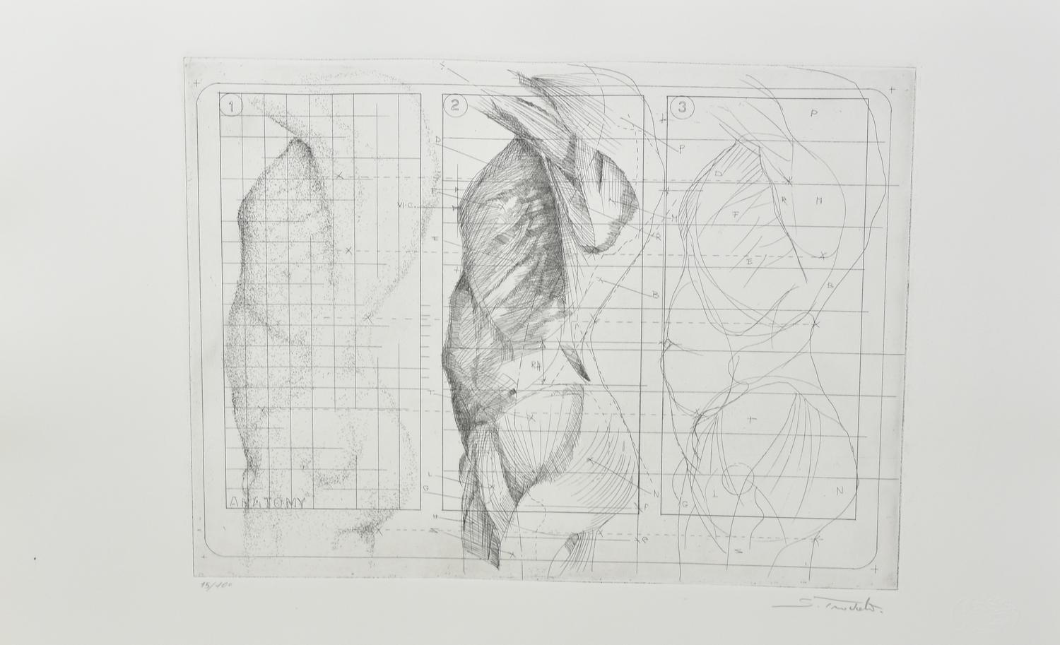 Sebastiano Trovato ANATOMY cartella contenente 5 acqueforti su carta, battuta...