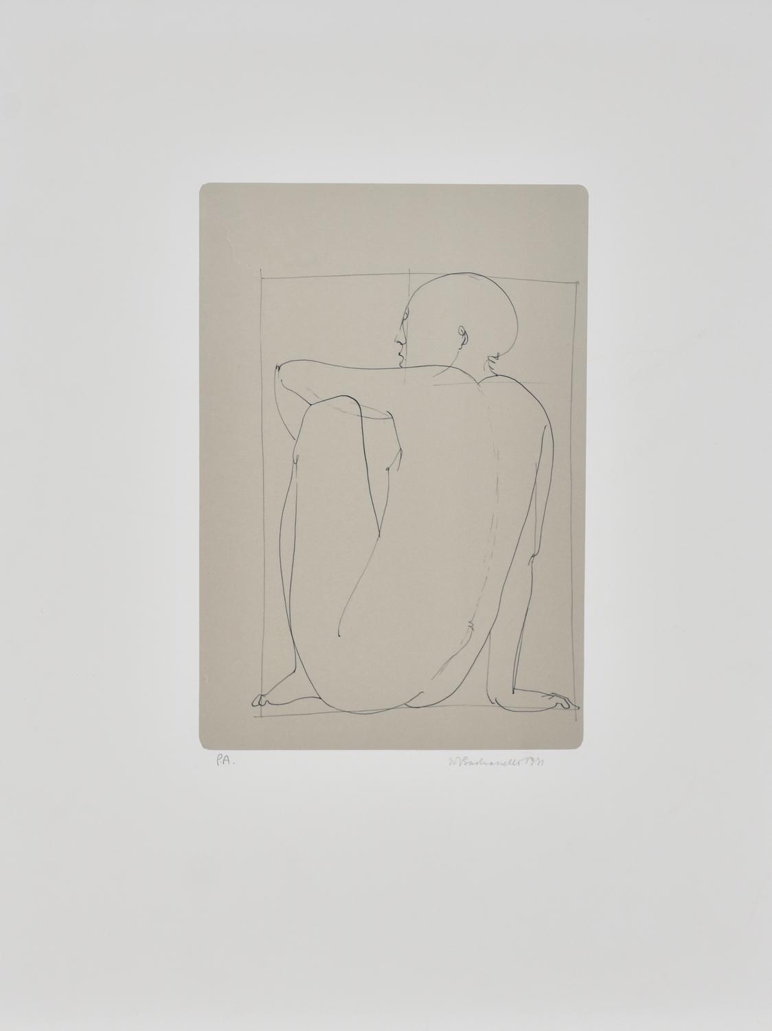 Bastianello NUDO DI SCHIENA incisione su carta, cm 47x35 (lastra cm...