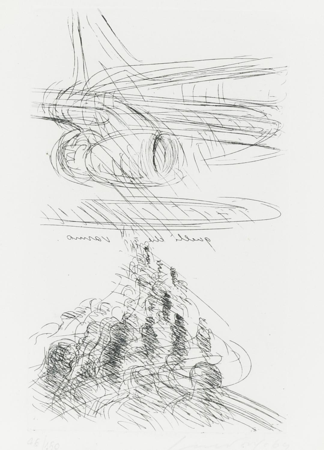 Ignoto SENZA TITOLO acquaforte su carta, cm 19,5x12; es. 46/150 firma e data...