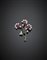 Three oval ruby and diamond bi-coloured gold flower brooch, ruby in all ct. 3.10 circa and diamonds in all ct. 2 circa, g 7.60 circa, length cm 4.20 circa.