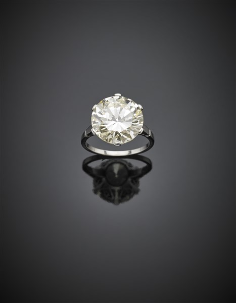 Anello in platino con diamante rotondo di ct. 8,52, g 6 circa misura 13/53. A