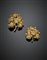 Due spille a foglia con piccole more in oro giallo satinato, complessivi g 17,2